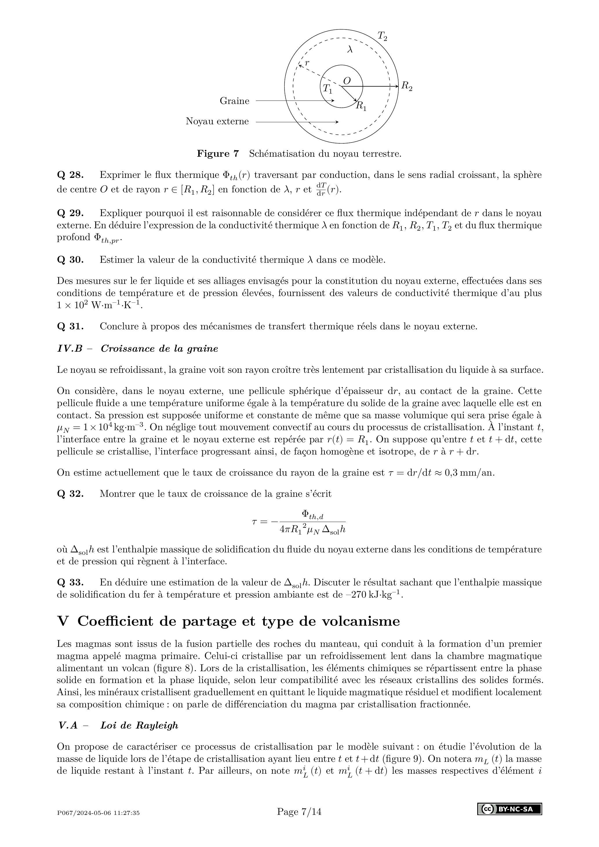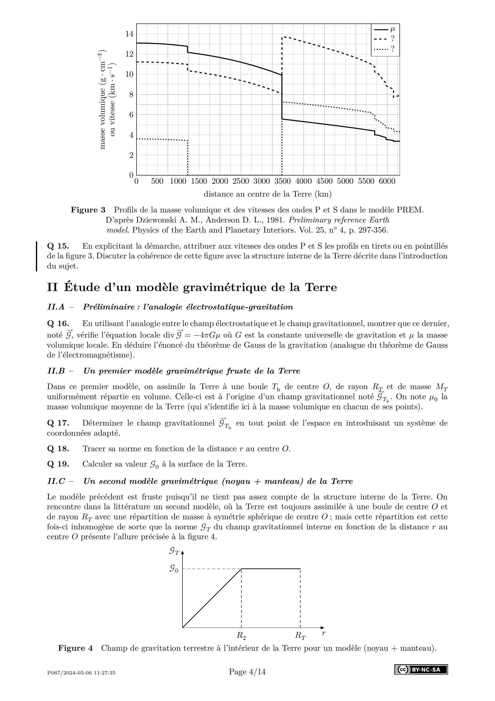 Q 21. Déterminer la distribution de masse volumique pour la Terre dans ce modèle. L'exprimer en fonction de et dans le noyau et en fonction de et dans le manteau.