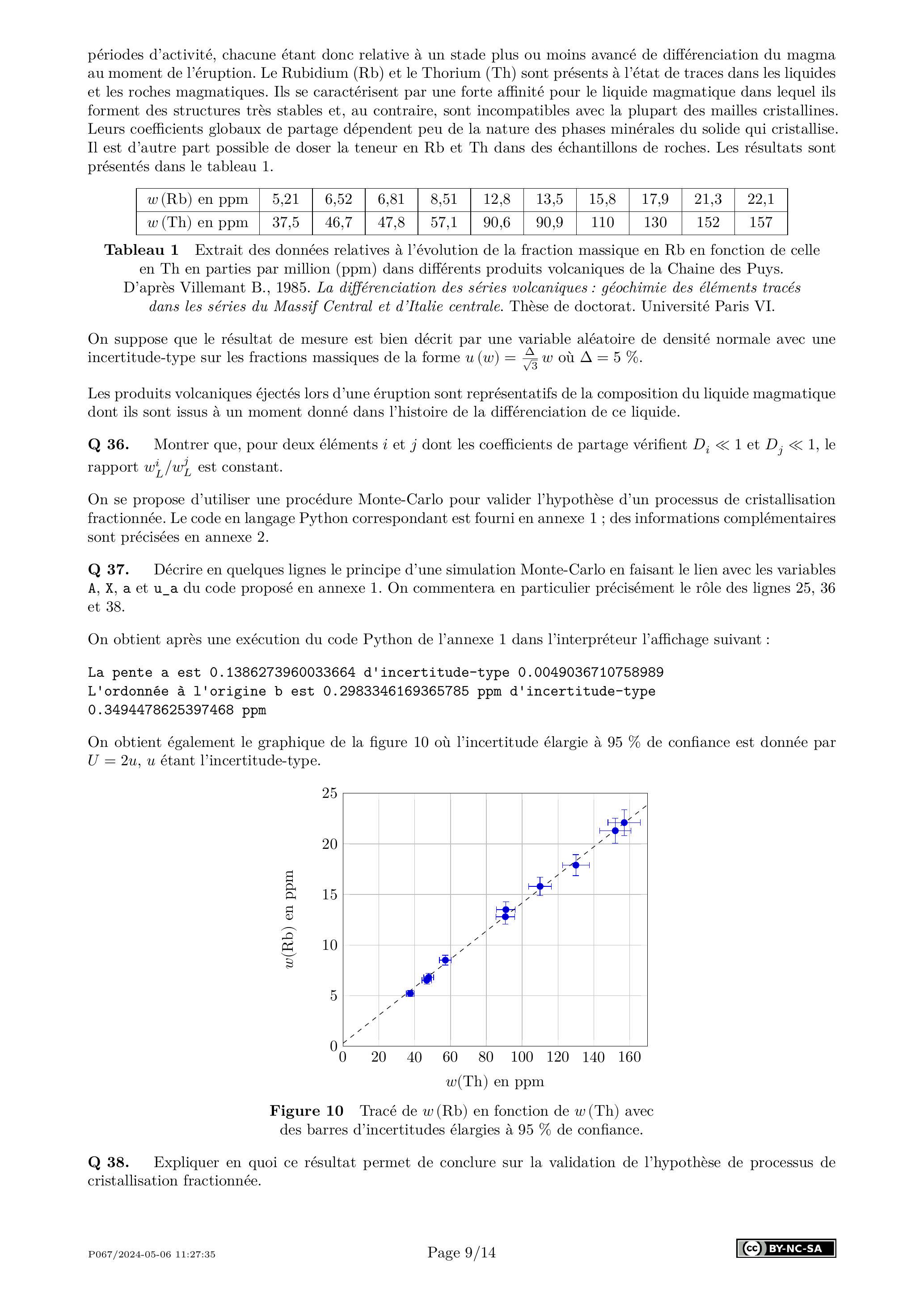 Q 38. Expliquer en quoi ce résultat permet de conclure sur la validation de l'hypothèse de processus de cristallisation fractionnée.