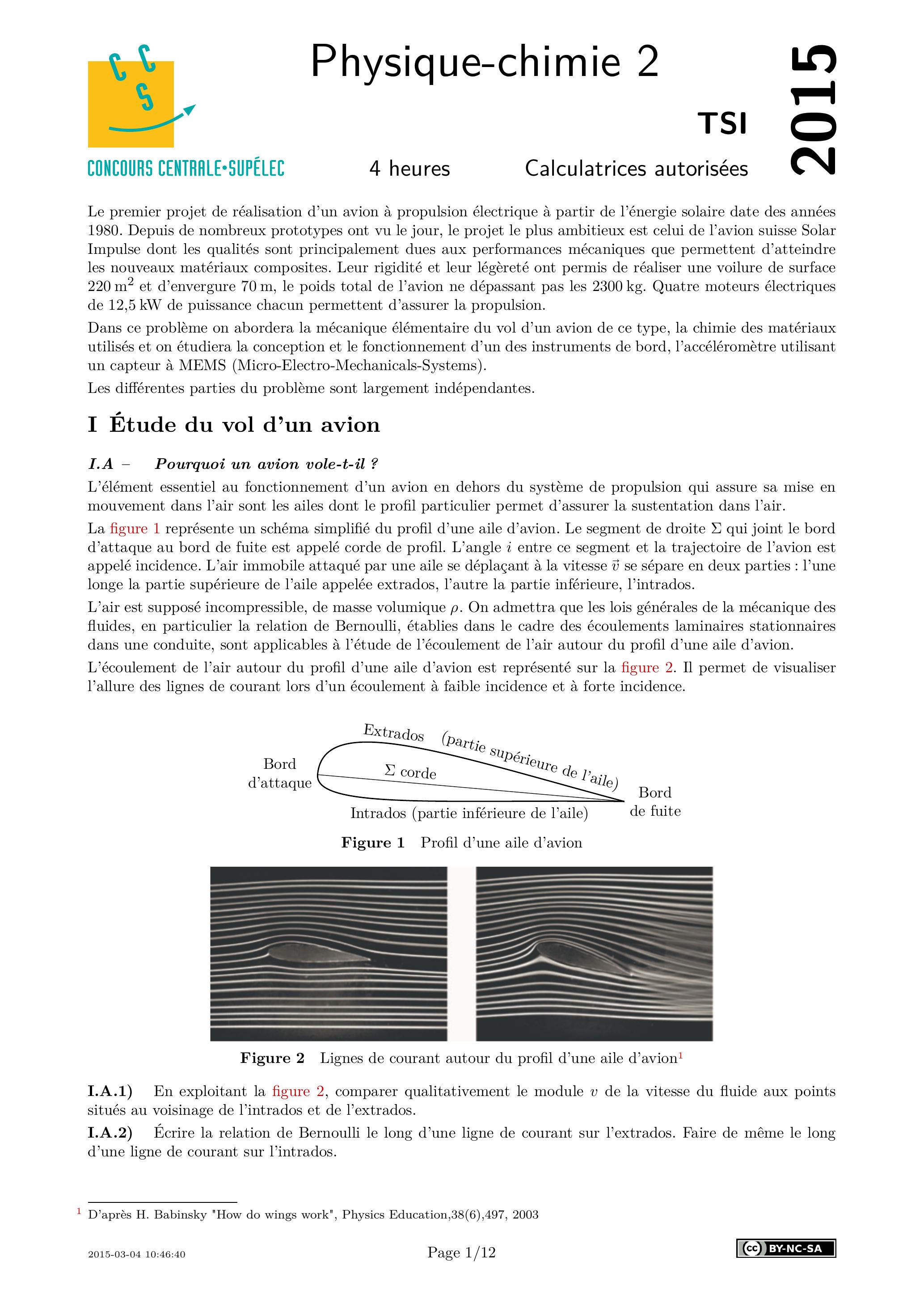 Centrale Physique Chimie 2 TSI 2015 - Version Web LaTeX | WikiPrépa | WikiPrépa