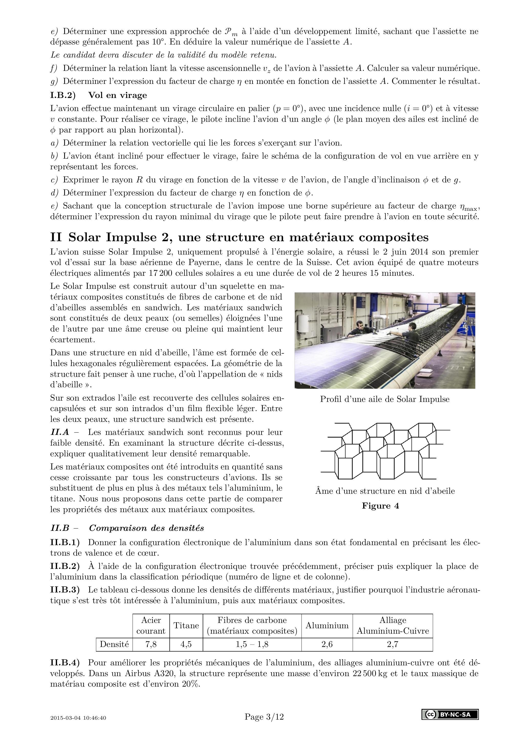 II.B.4) Pour améliorer les propriétés mécaniques de l'aluminium, des alliages aluminium-cuivre ont été développés. Dans un Airbus A320, la structure représente une masse d'environ 22500 kg et le taux massique de matériau composite est d'environ .