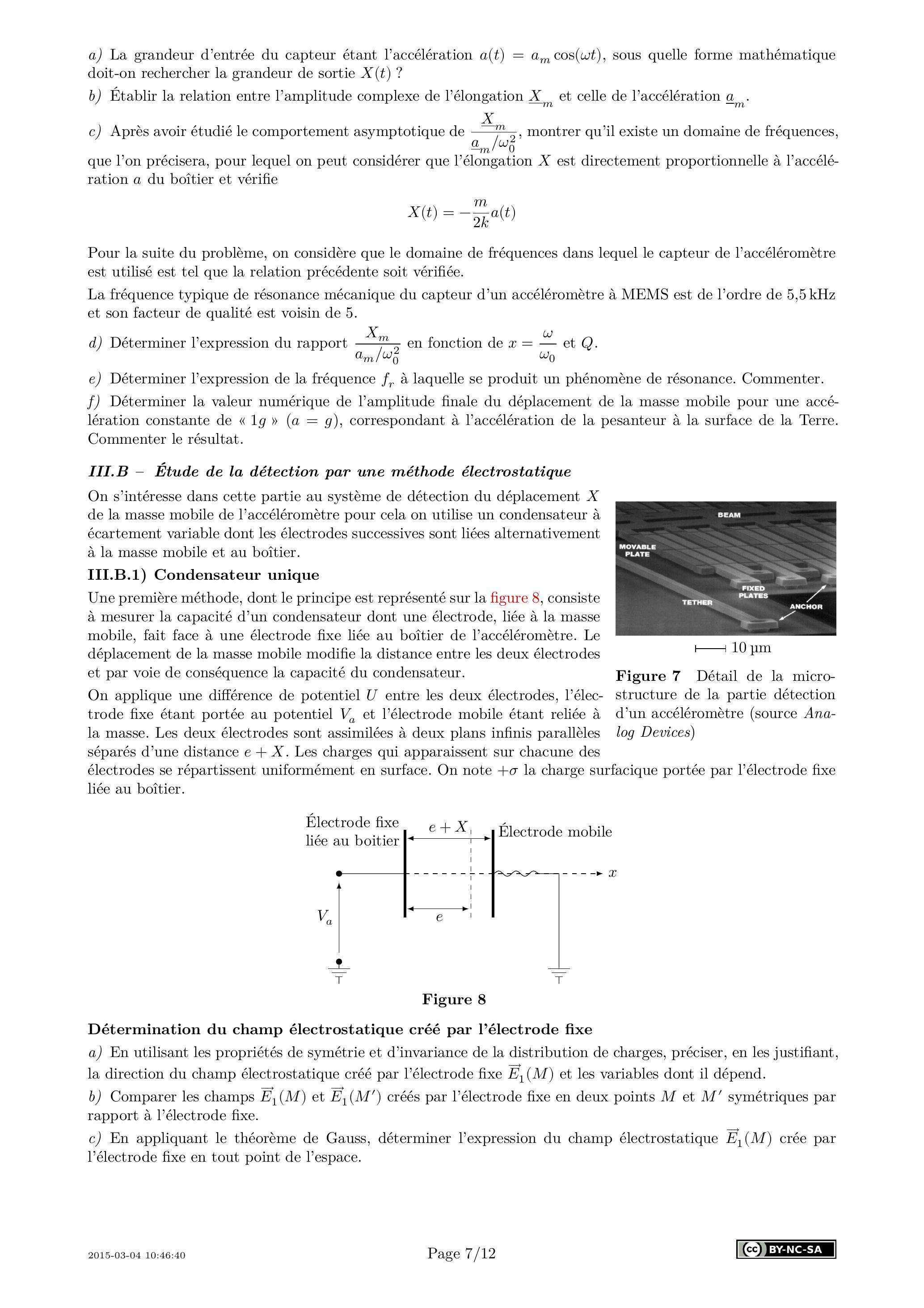 Dans ce problème on abordera la mécanique élémentaire du vol d'un avion de ce type, la chimie des matériaux utilisés et on étudiera la conception et le fonctionnement d'un des instruments de bord, l'accéléromètre utilisant un capteur à MEMS (Micro-Electro-Mechanicals-Systems).