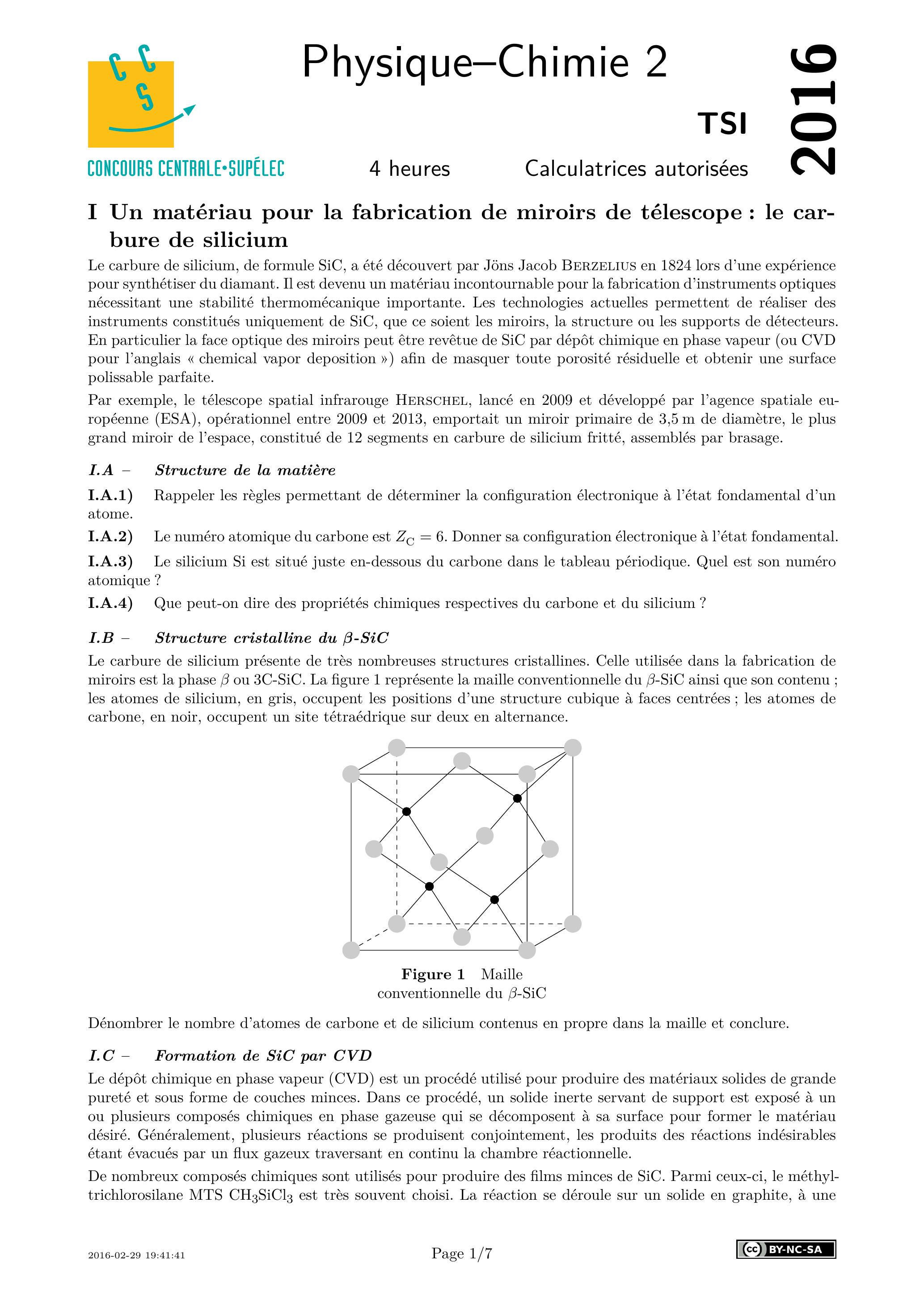 Centrale Physique Chimie 2 TSI 2016 - Version Web LaTeX | WikiPrépa | WikiPrépa