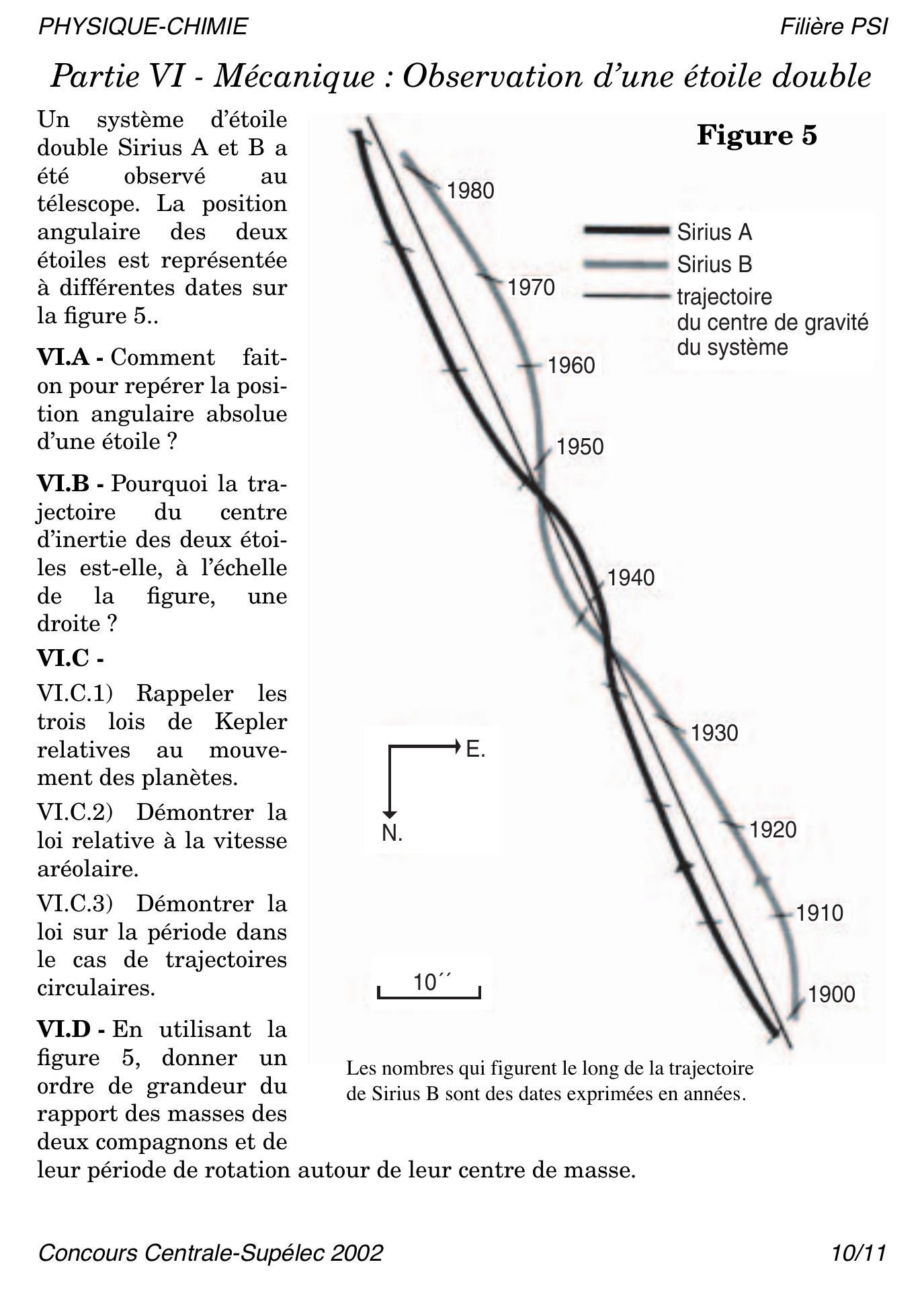 Un système d'étoile double Sirius A et B a été observé au télescope. La position angulaire des deux étoiles est représentée à différentes dates sur la figure 5..