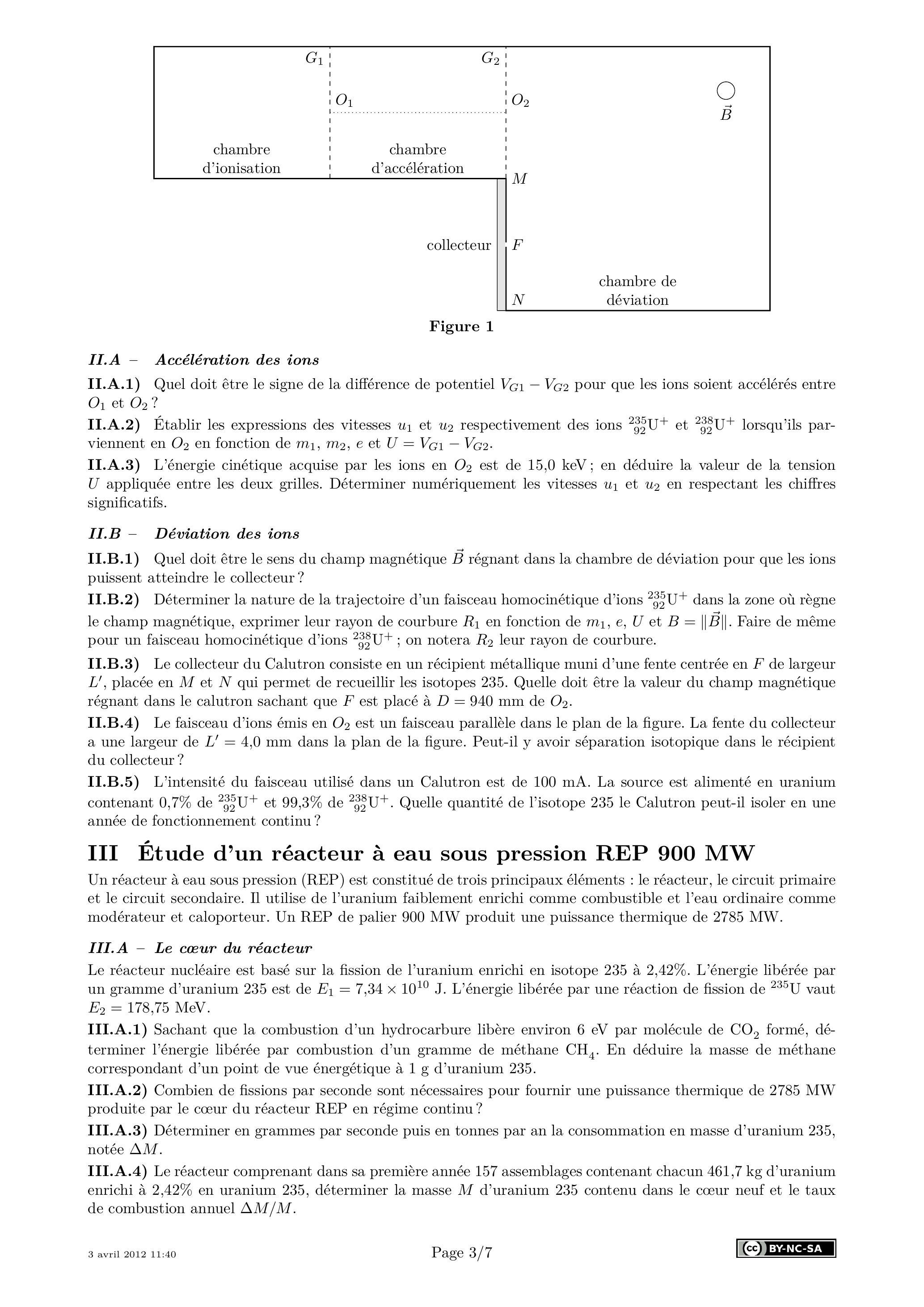 la chambre d'ionisation dans laquelle des atomes d'uranium et de masses respectives et portés à haute température sont ionisés en ions . On considérera qu'à la sortie de cette chambre, en , la vitesse des ions est quasi nulle;
