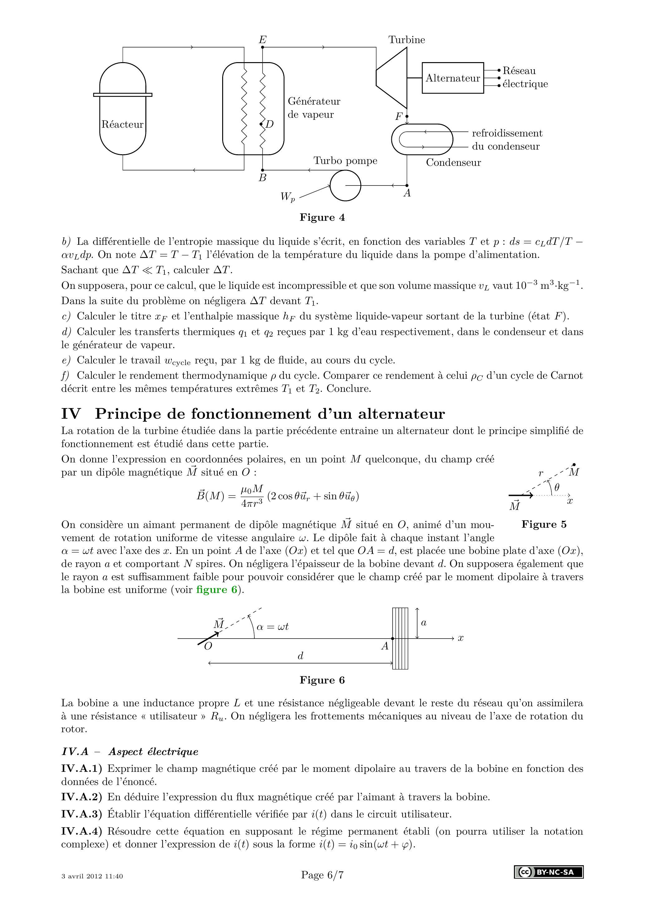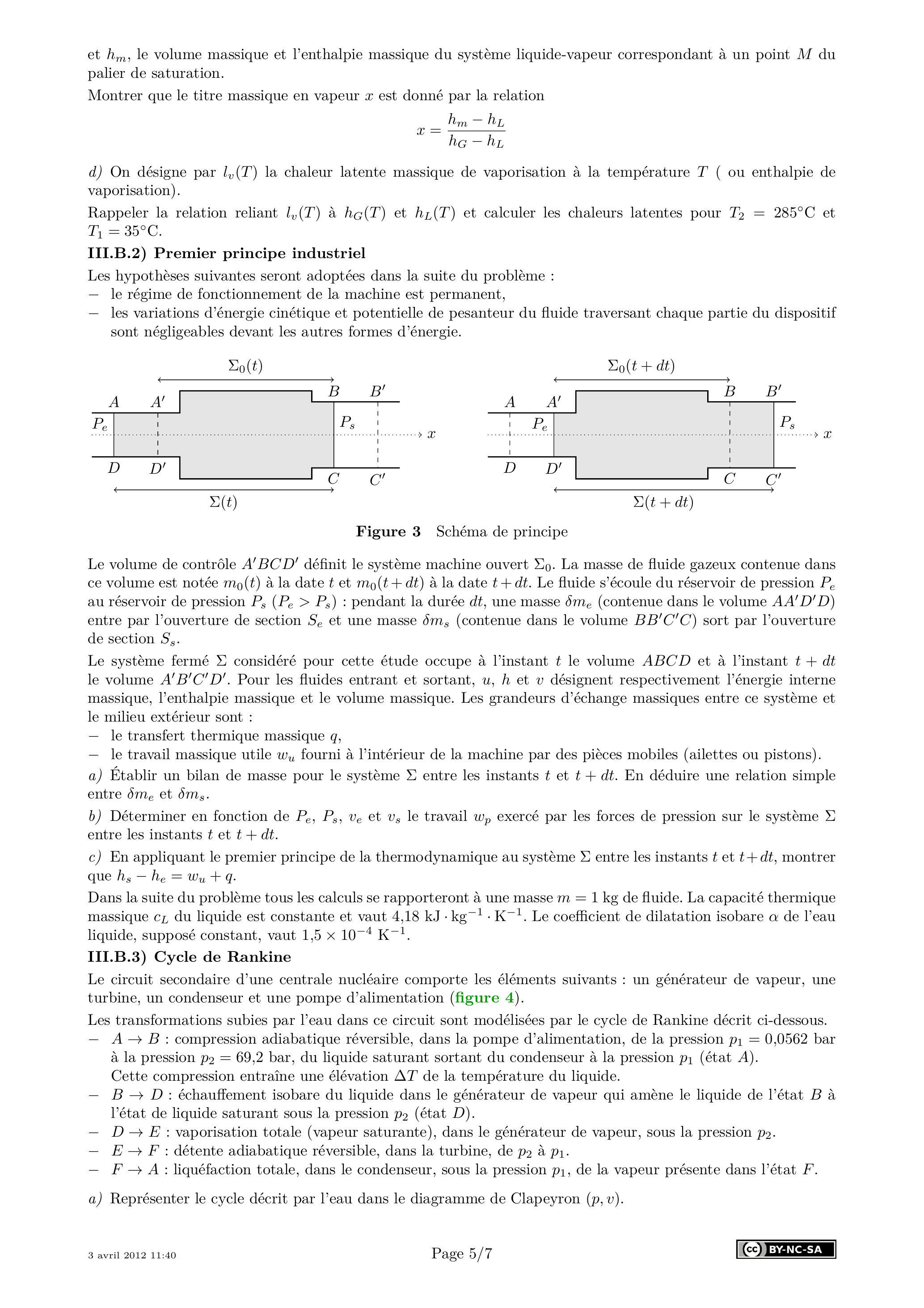 b) La différentielle de l'entropie massique du liquide s'écrit, en fonction des variables et . On note l'élévation de la température du liquide dans la pompe d'alimentation.