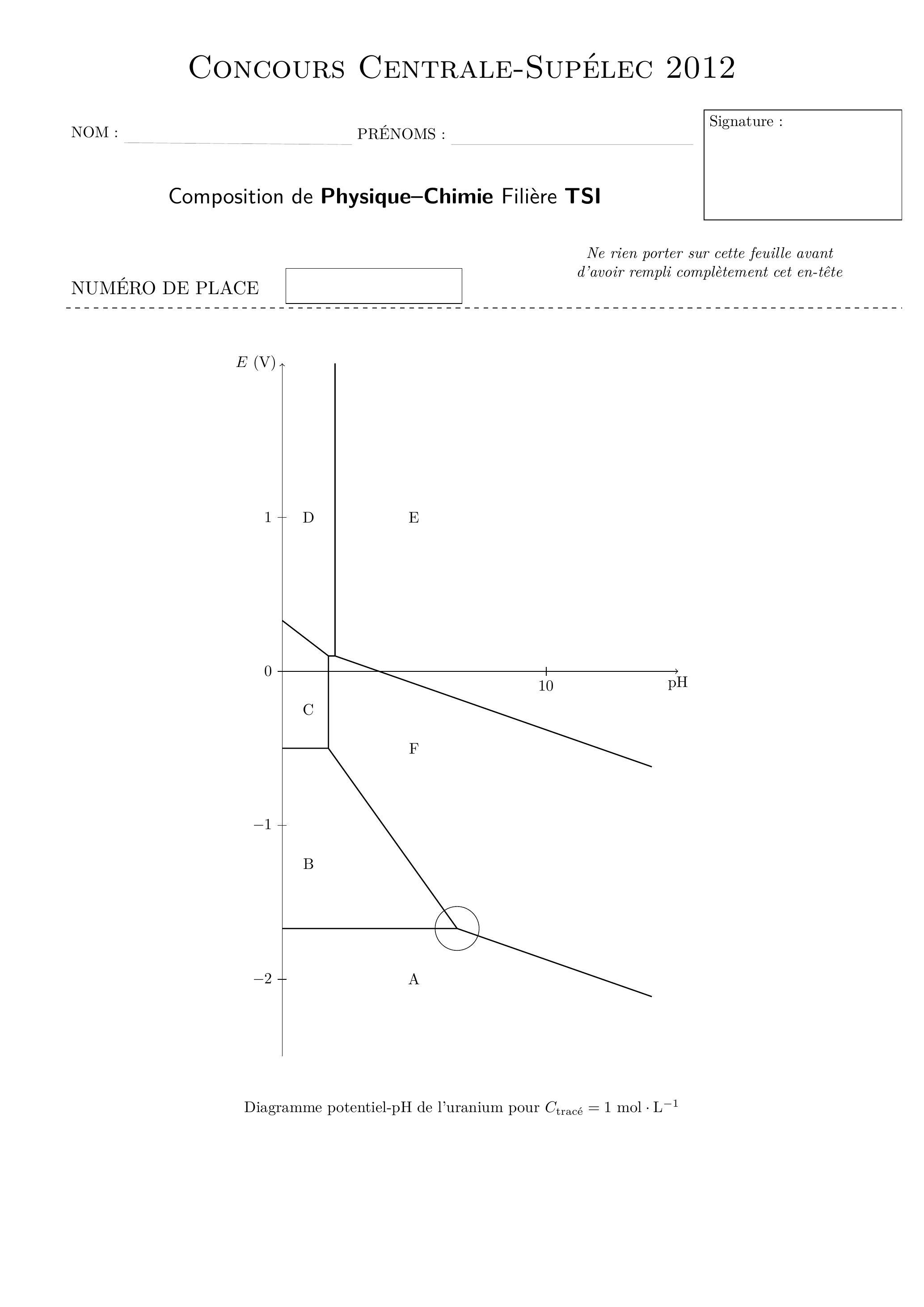 Centrale Physique Chimie TSI 2012 - Version Web LaTeX | WikiPrépa | WikiPrépa