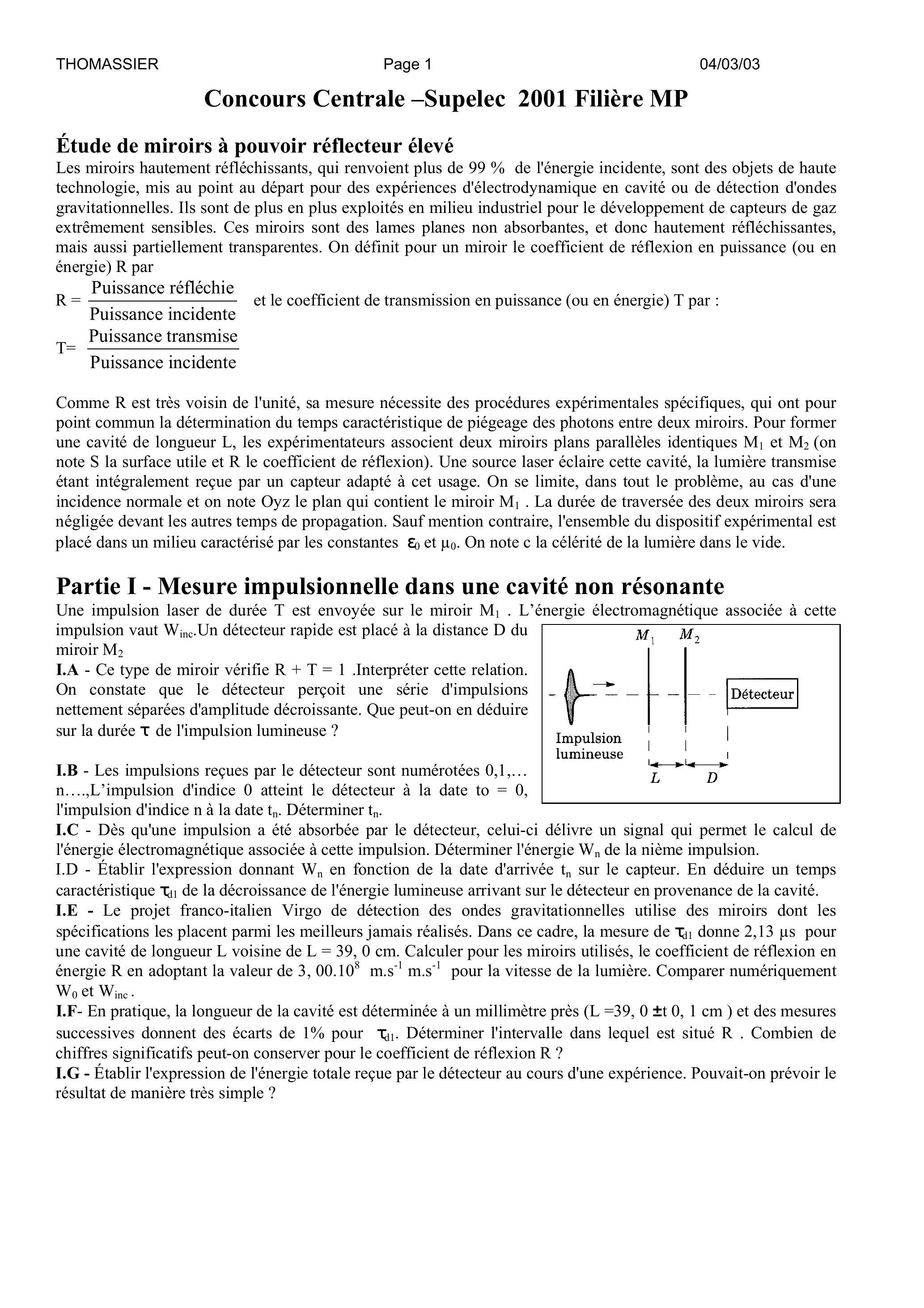 Centrale Physique MP 2001 - Version Web LaTeX | WikiPrépa | WikiPrépa