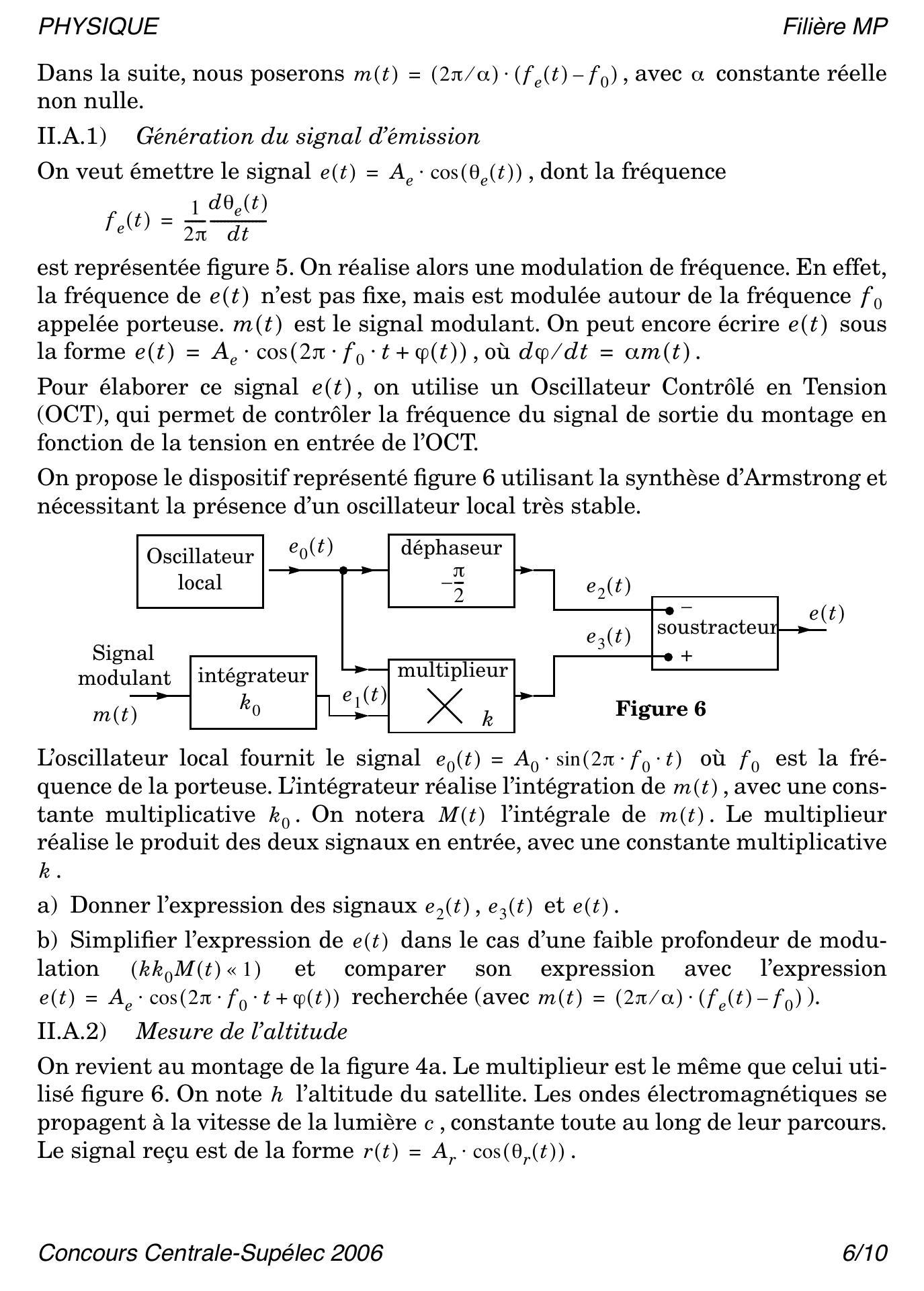 On revient au montage de la figure 4a. Le multiplieur est le même que celui utilisé figure 6. On note l'altitude du satellite. Les ondes électromagnétiques se propagent à la vitesse de la lumière , constante toute au long de leur parcours. Le signal reçu est de la forme .