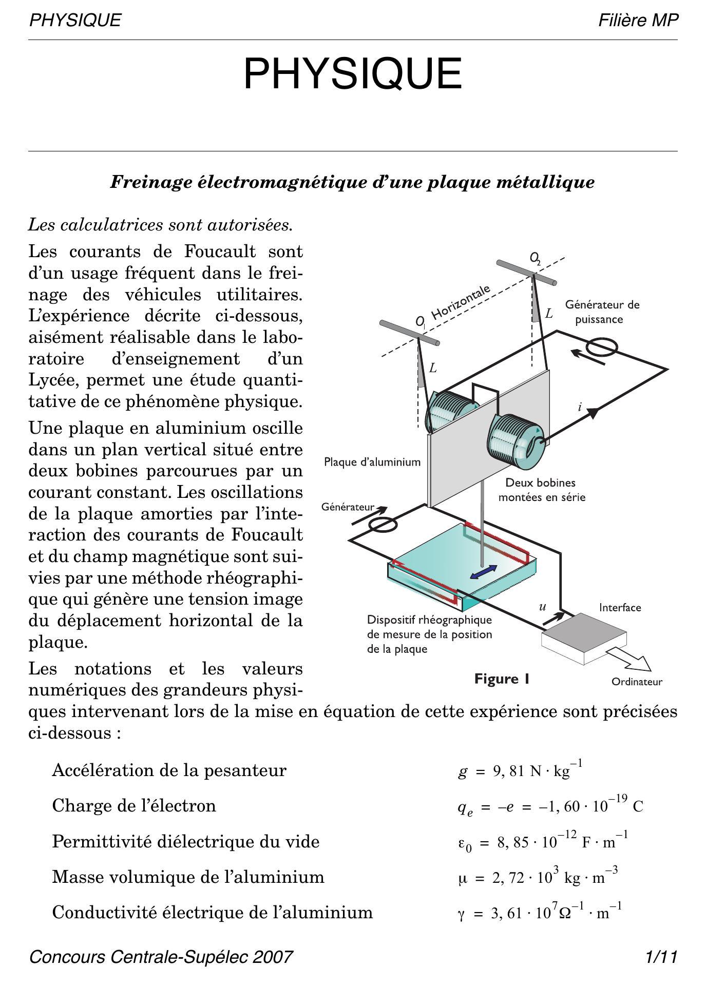 Centrale Physique MP 2007 - Version Web LaTeX | WikiPrépa | WikiPrépa