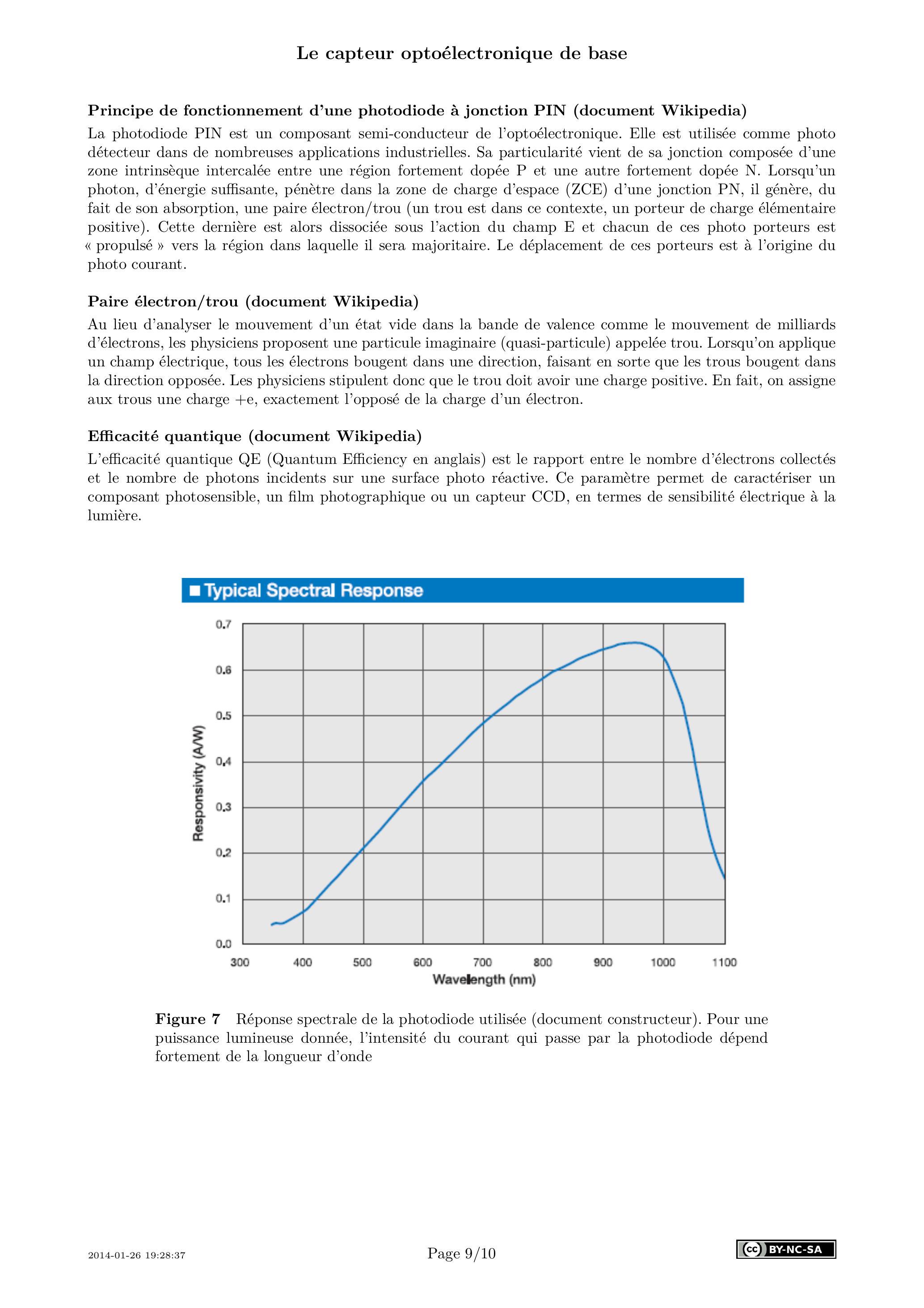 Une photodiode de type PIN est un capteur optoélectronique très répandu qui convertit le signal optique en signal électrique. Déterminer l'efficacité quantique de ce composant dans les conditions expérimentales retenues. Le candidat exploitera les textes fournis en annexe et le graphe de la figure 7 pour répondre de manière clairement argumentée à cette question.
