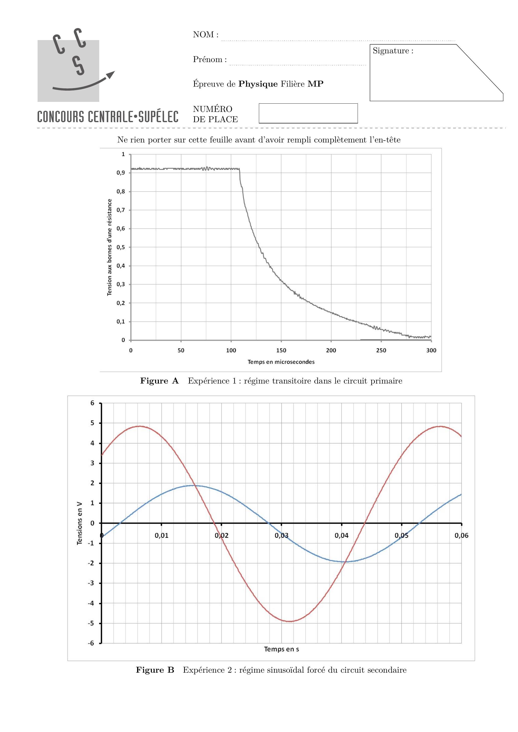 Afin de déterminer les valeurs des coefficients d'auto-inductances et et l'inductance mutuelle , plusieurs expérimentations ont été menées. Des graphes issus des ces différentes expériences sont fournis dans le document réponse (figures et C ). Ils peuvent servir de support pour illustrer la démarche et sont à rendre avec la copie.