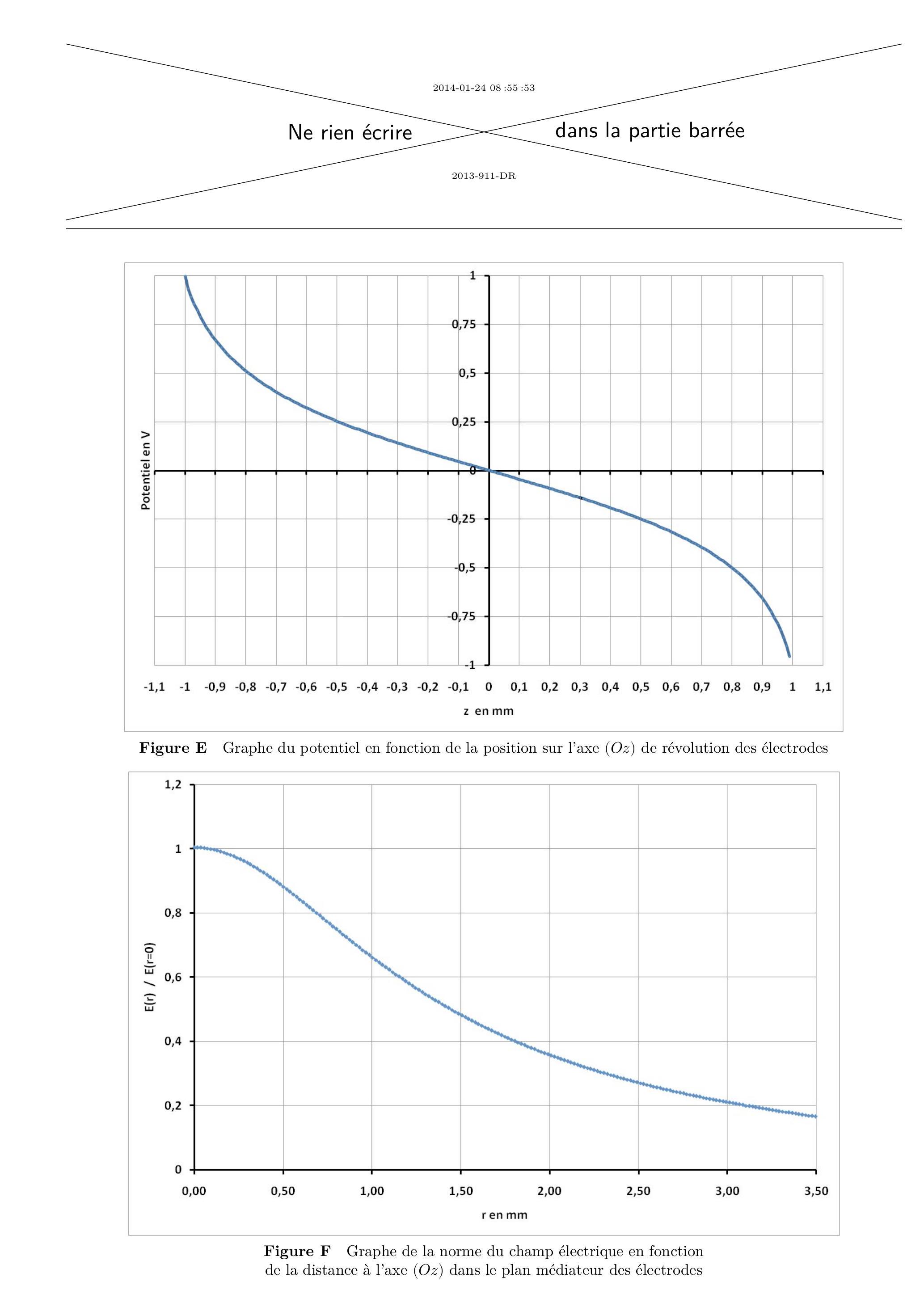 Figure E Graphe du potentiel en fonction de la position sur l'axe ( ) de révolution des électrodes
