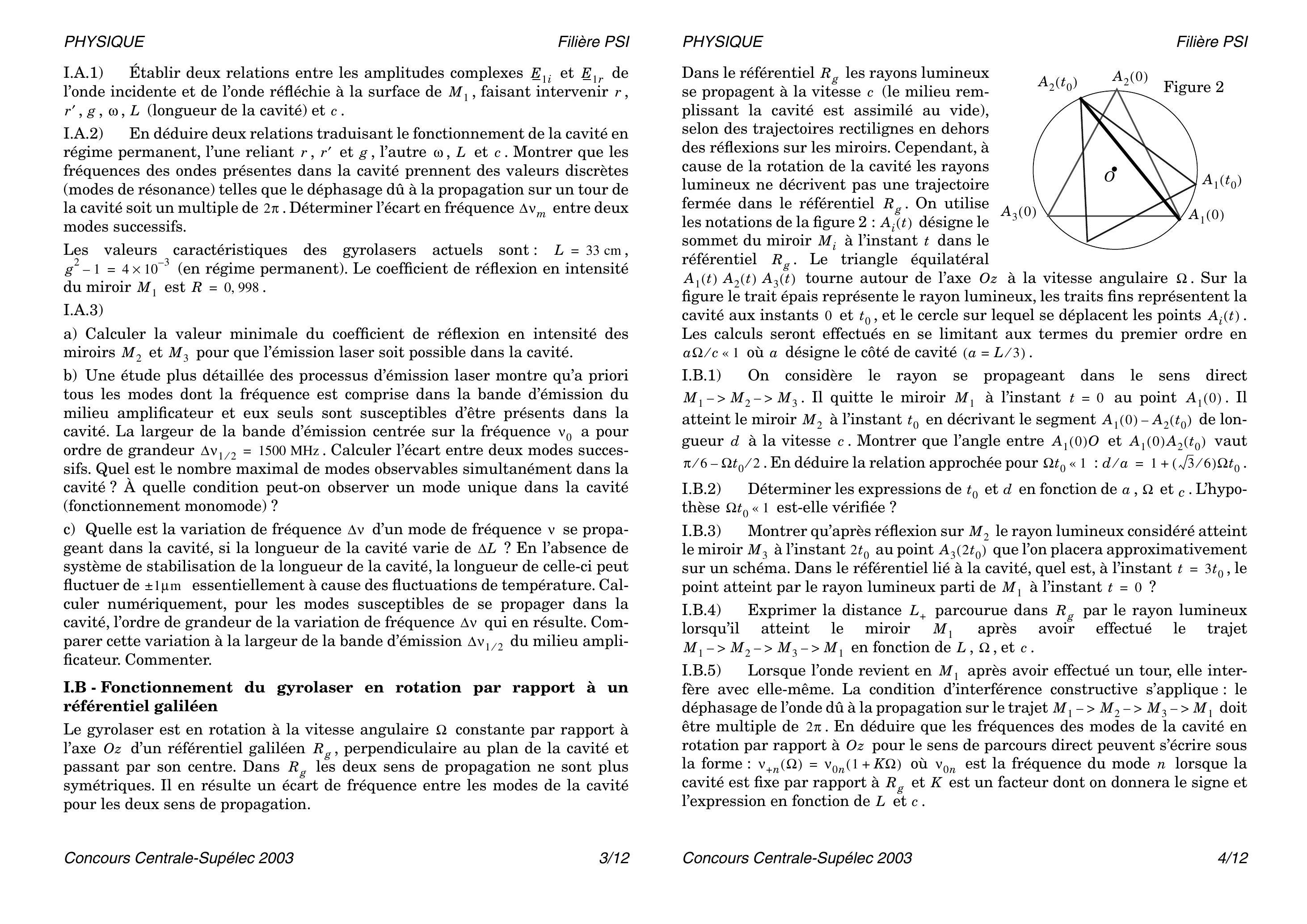 Centrale Physique PSI 2003 - Version Web LaTeX | WikiPrépa | WikiPrépa