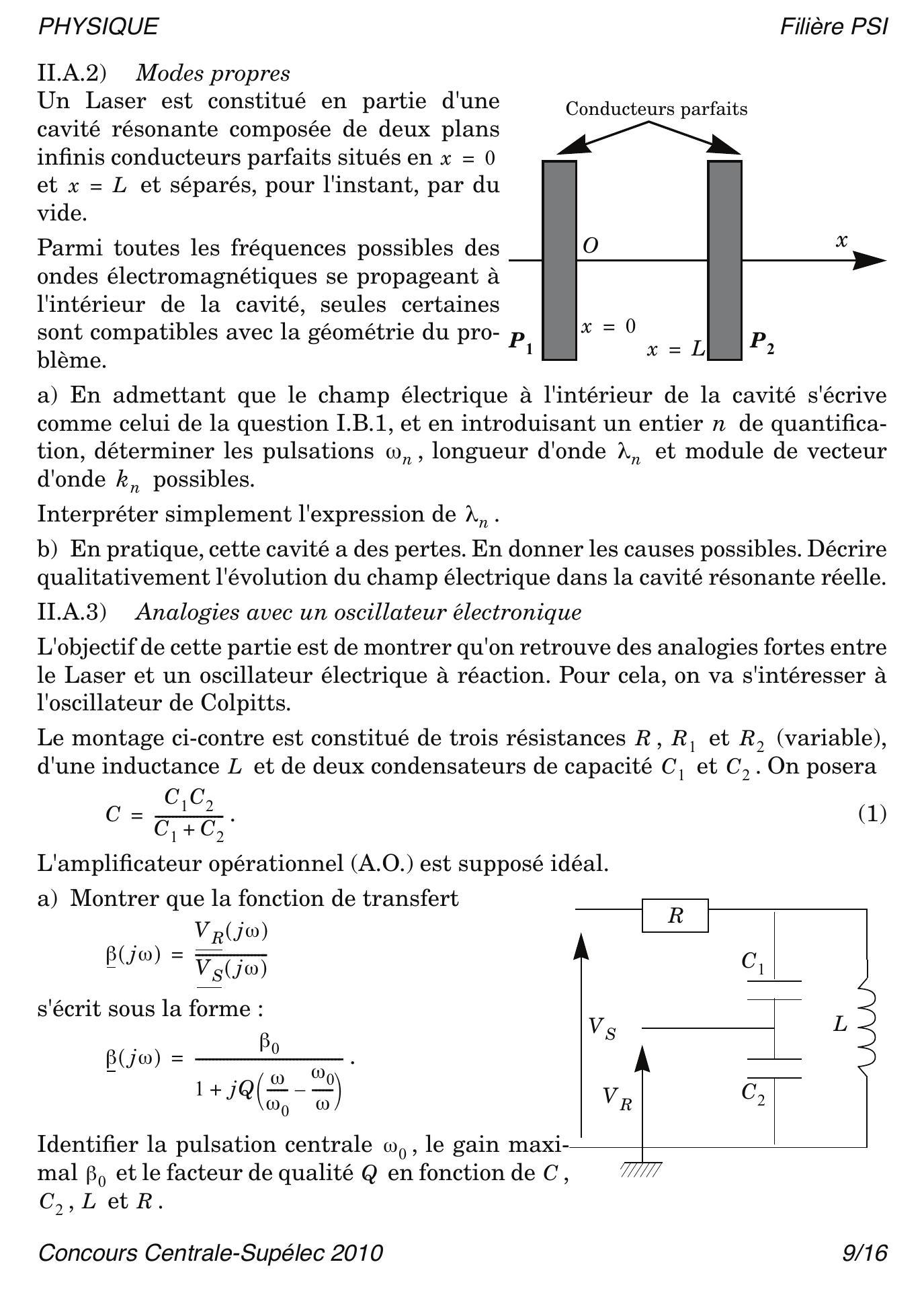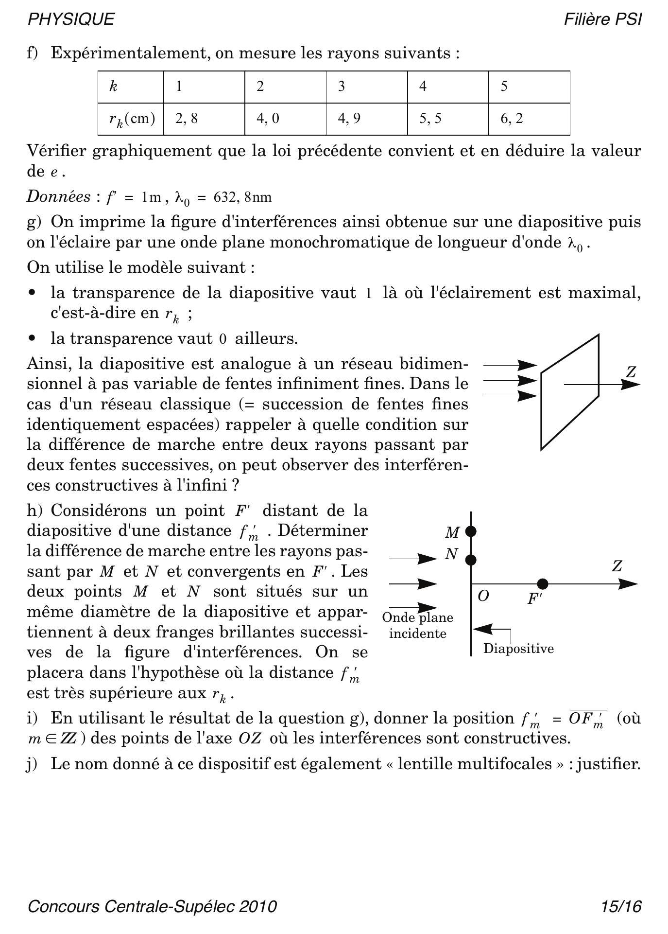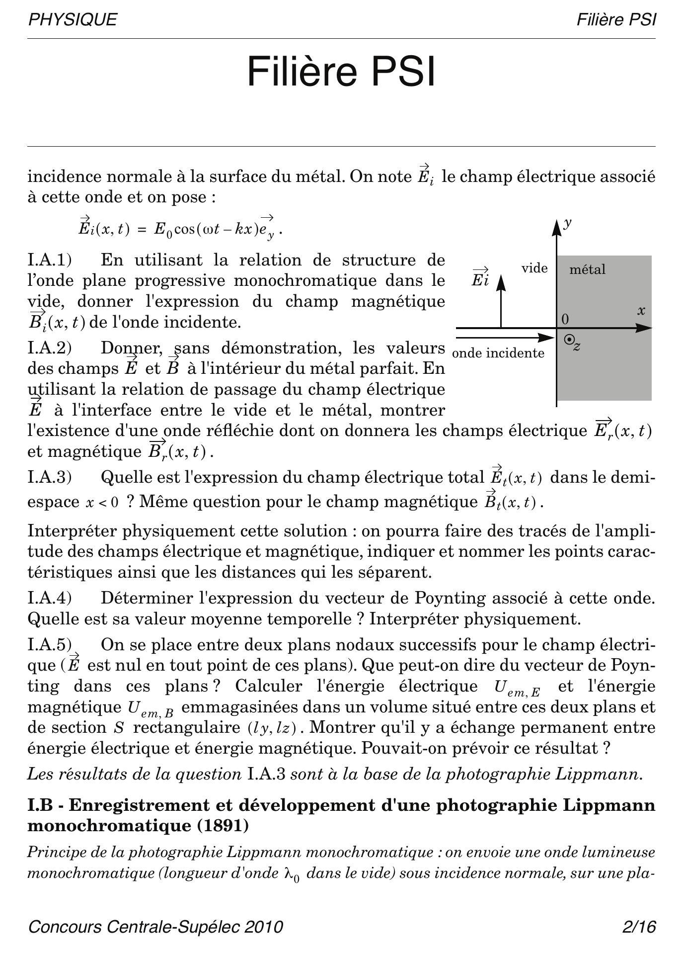 Centrale Physique PSI 2010 - Version Web LaTeX | WikiPrépa | WikiPrépa