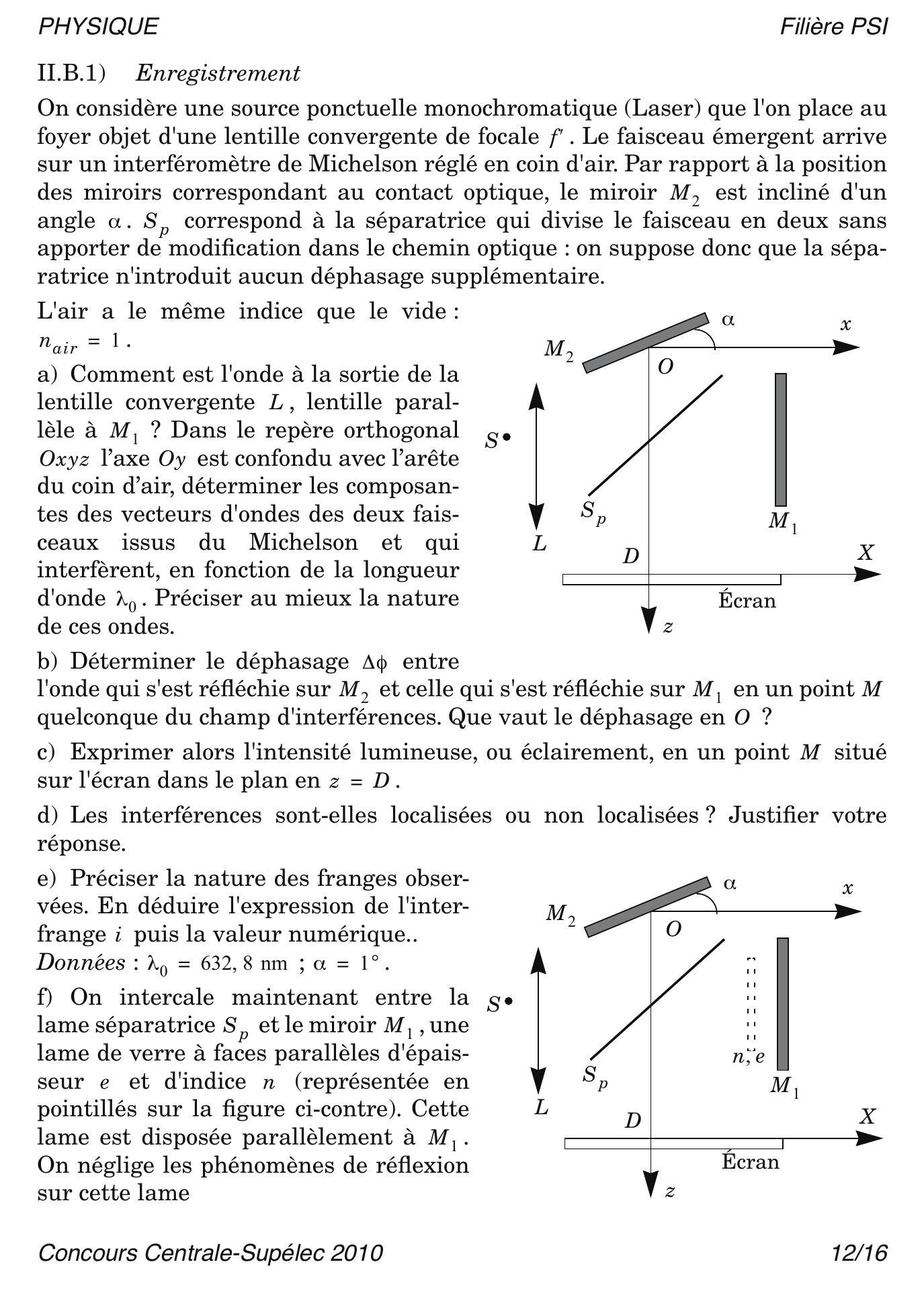 rences obtenues par superposition de deux ondes planes monochromatiques). Retrouver le résultat de la question I.B.1.c.
