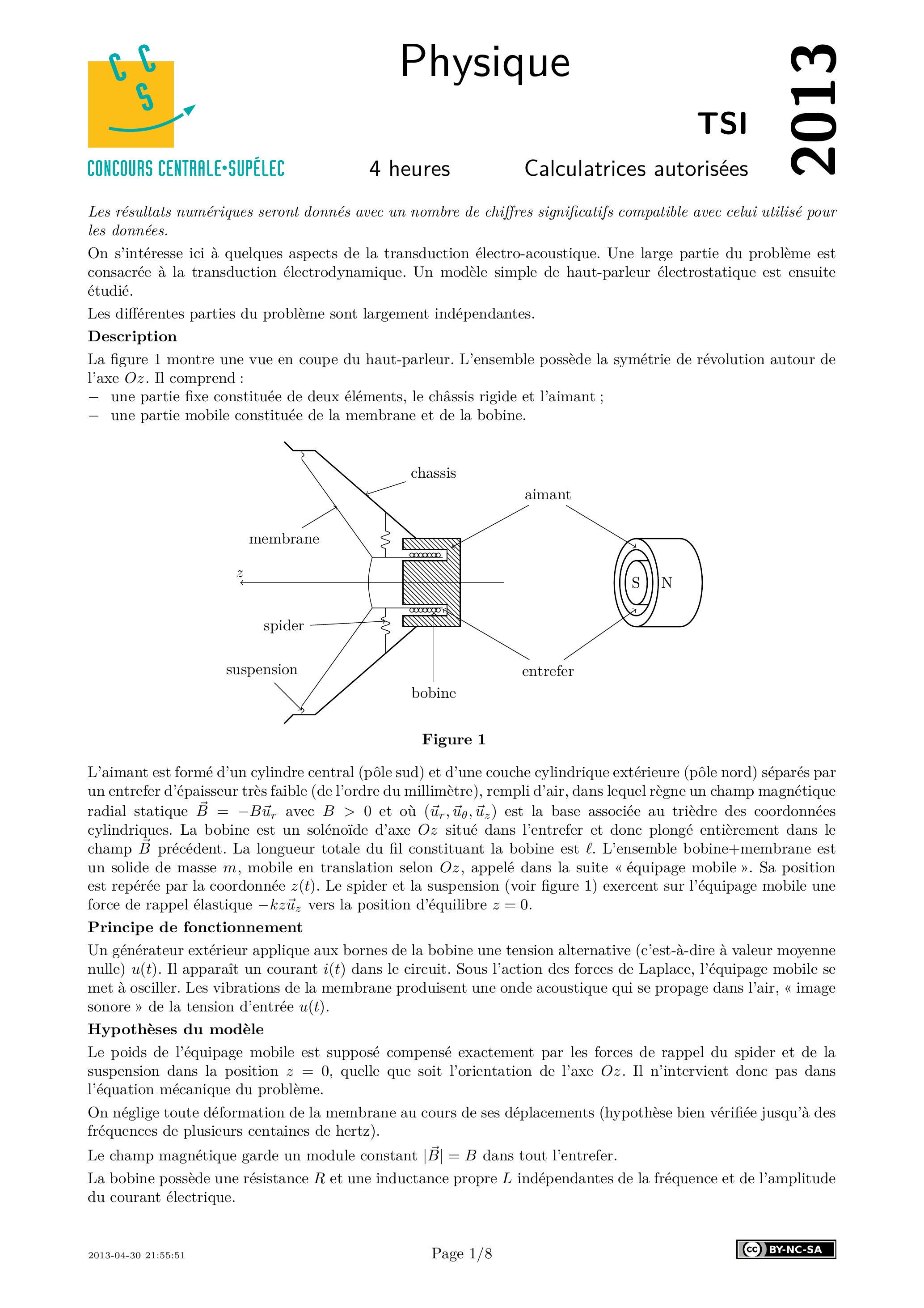 Centrale Physique TSI 2013 - Version Web LaTeX | WikiPrépa | WikiPrépa