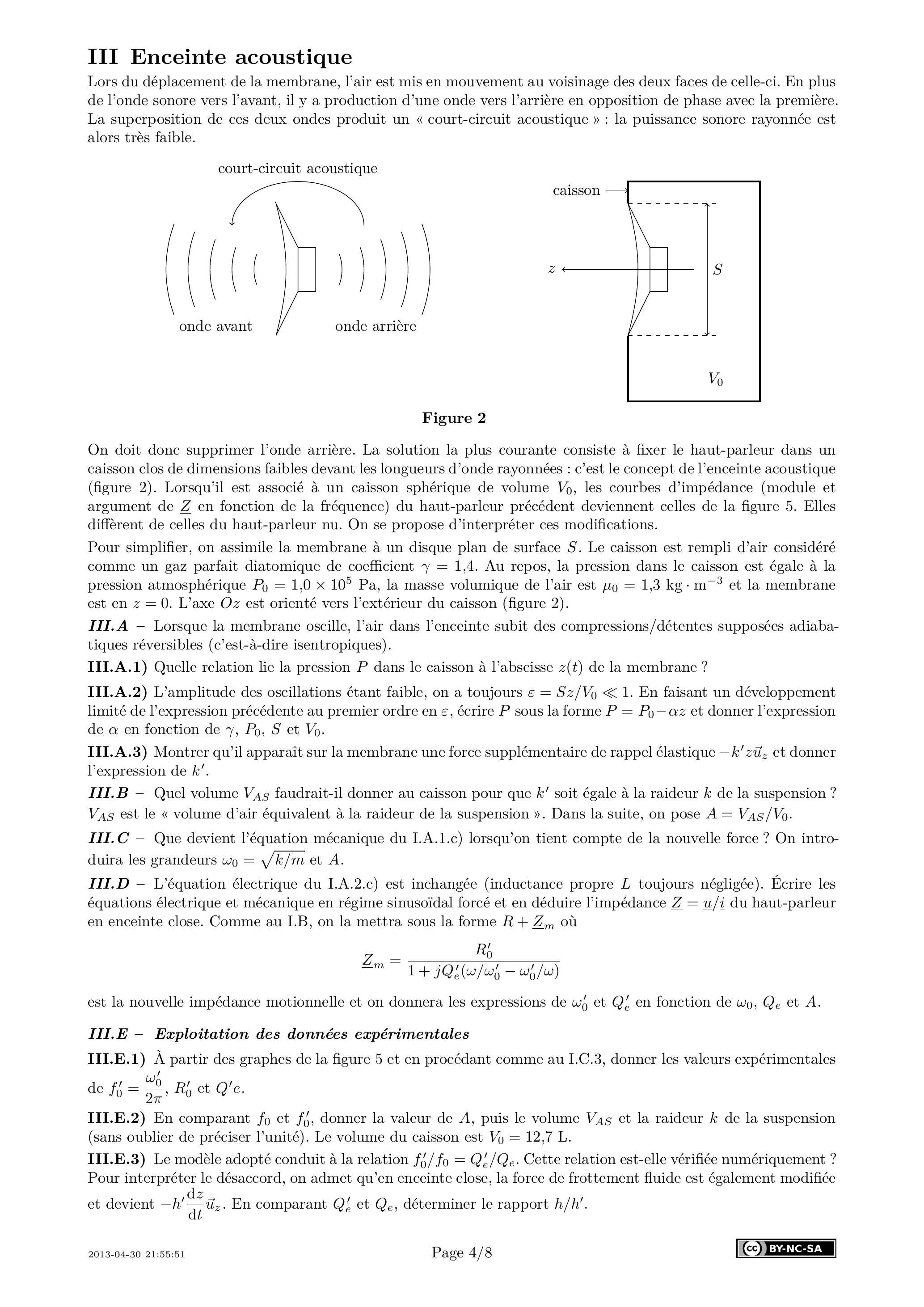III.A - Lorsque la membrane oscille, l'air dans l'enceinte subit des compressions/détentes supposées adiabatiques réversibles (c'est-à-dire isentropiques).