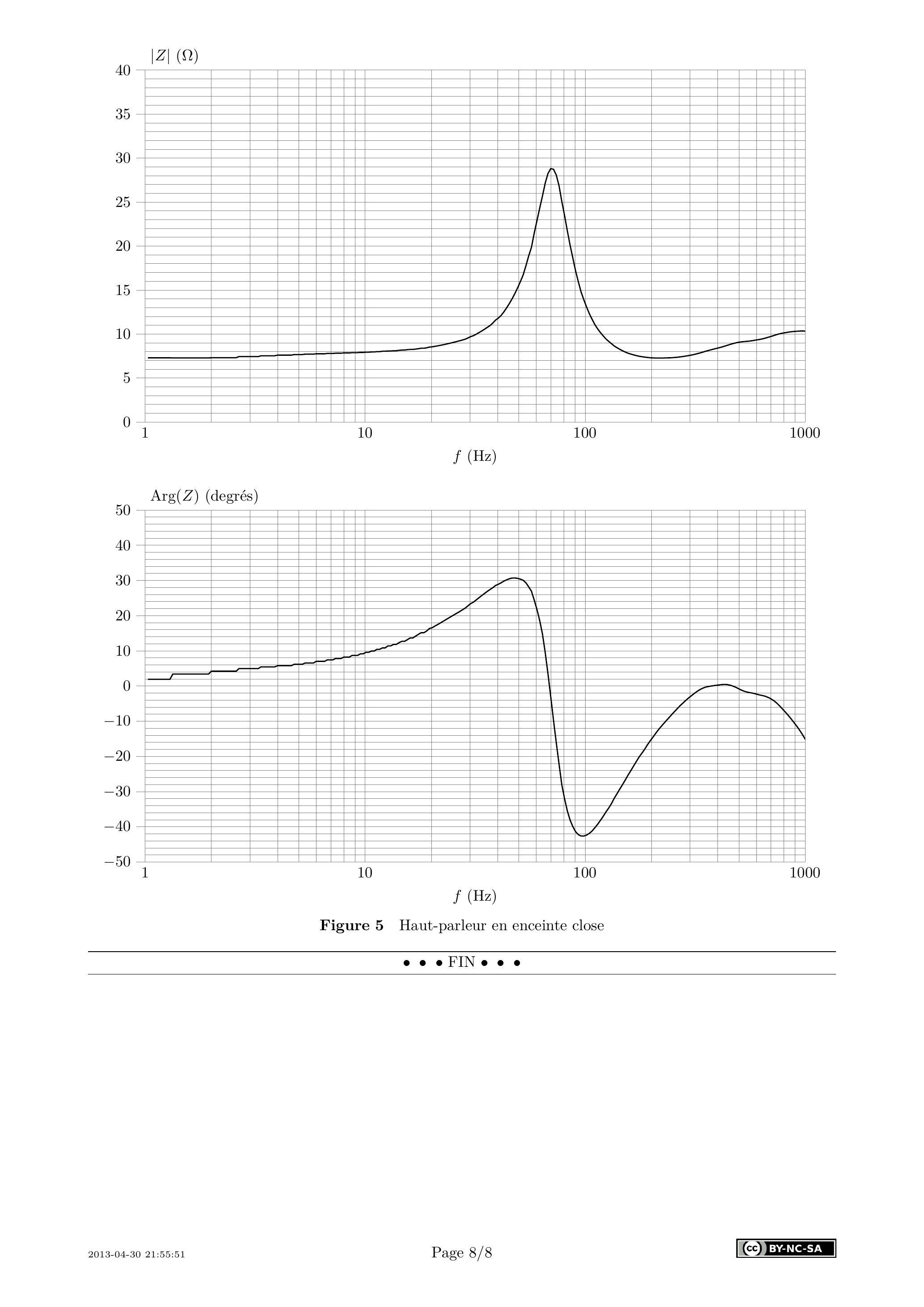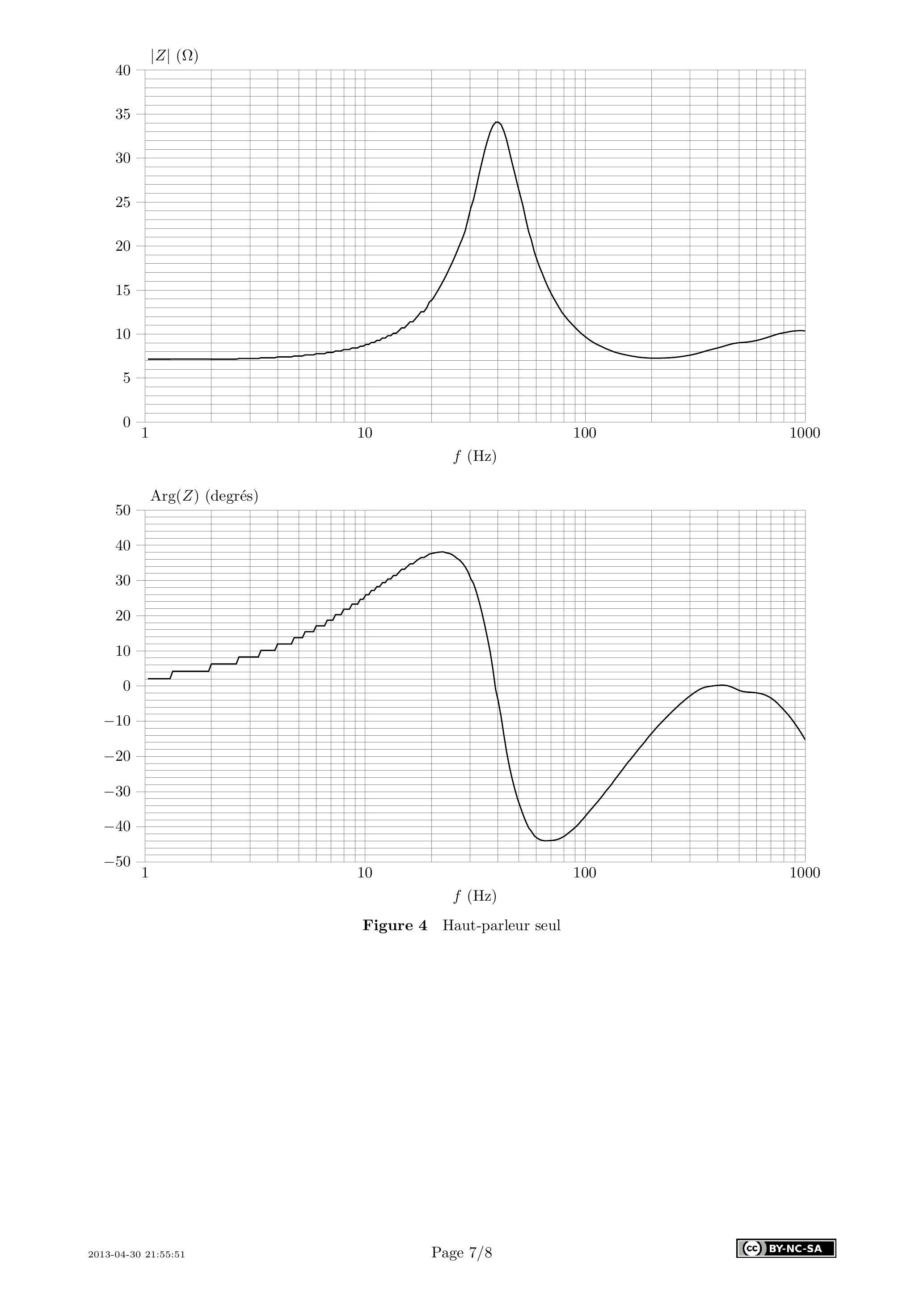La figure 4 donne les graphes du module et de l'argument de d'un haut-parleur réel pour des fréquences allant de 1 Hz à 1 kHz . L'échelle des abscisses est logarithmique. L'argument est en degrés. On cherche à savoir dans quelle mesure le modèle précédent est adapté.