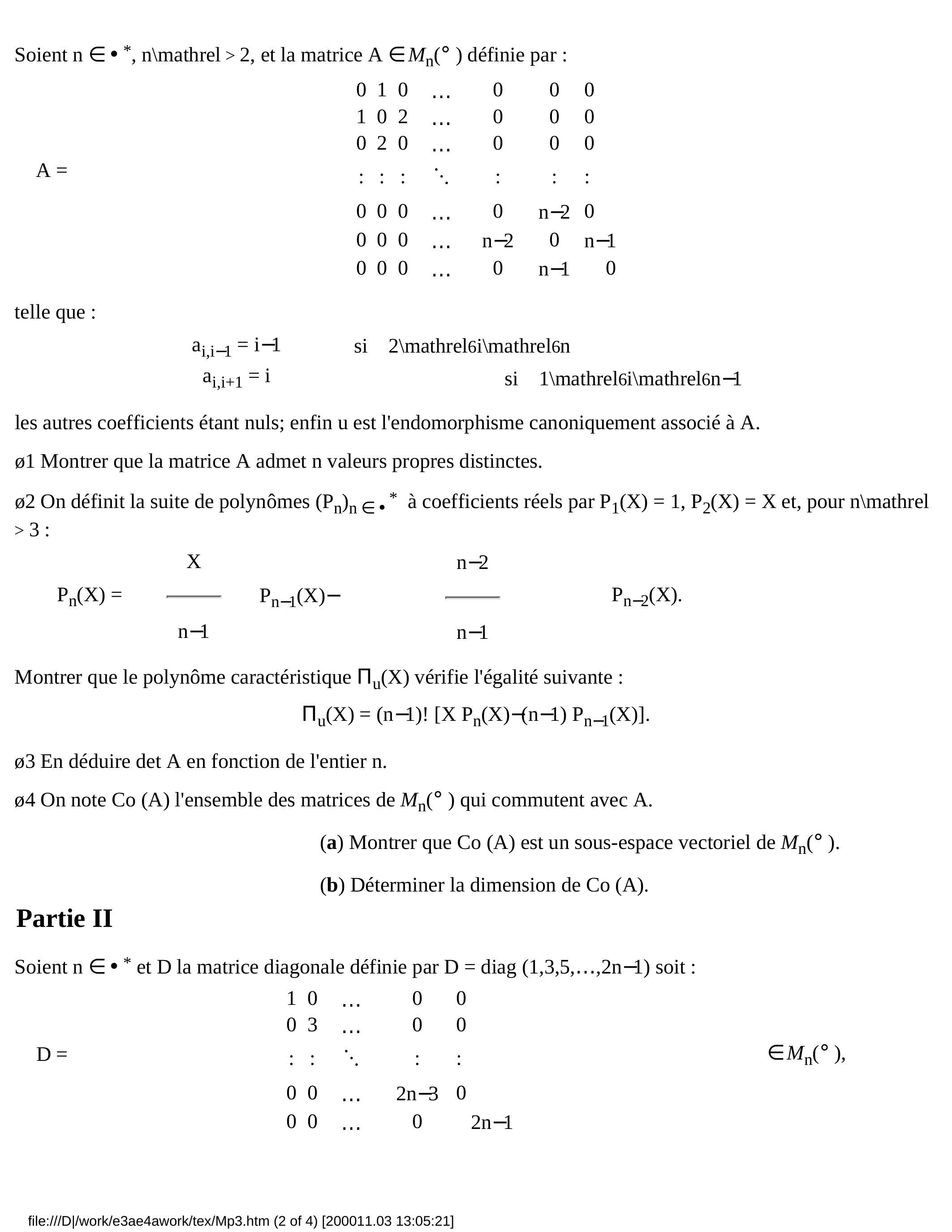 E3A Mathématiques 3 MP 2000 - Version Web LaTeX | WikiPrépa | WikiPrépa