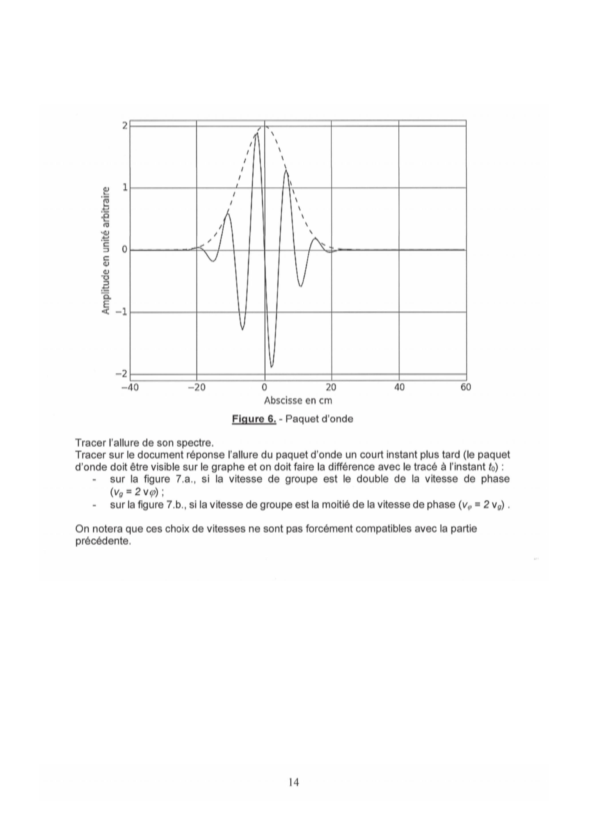 Tracer sur le document réponse l'allure du paquet d'onde un court instant plus tard (le paquet d'onde doit être visible sur le graphe et on doit faire la différence avec le tracé à l'instant ) :