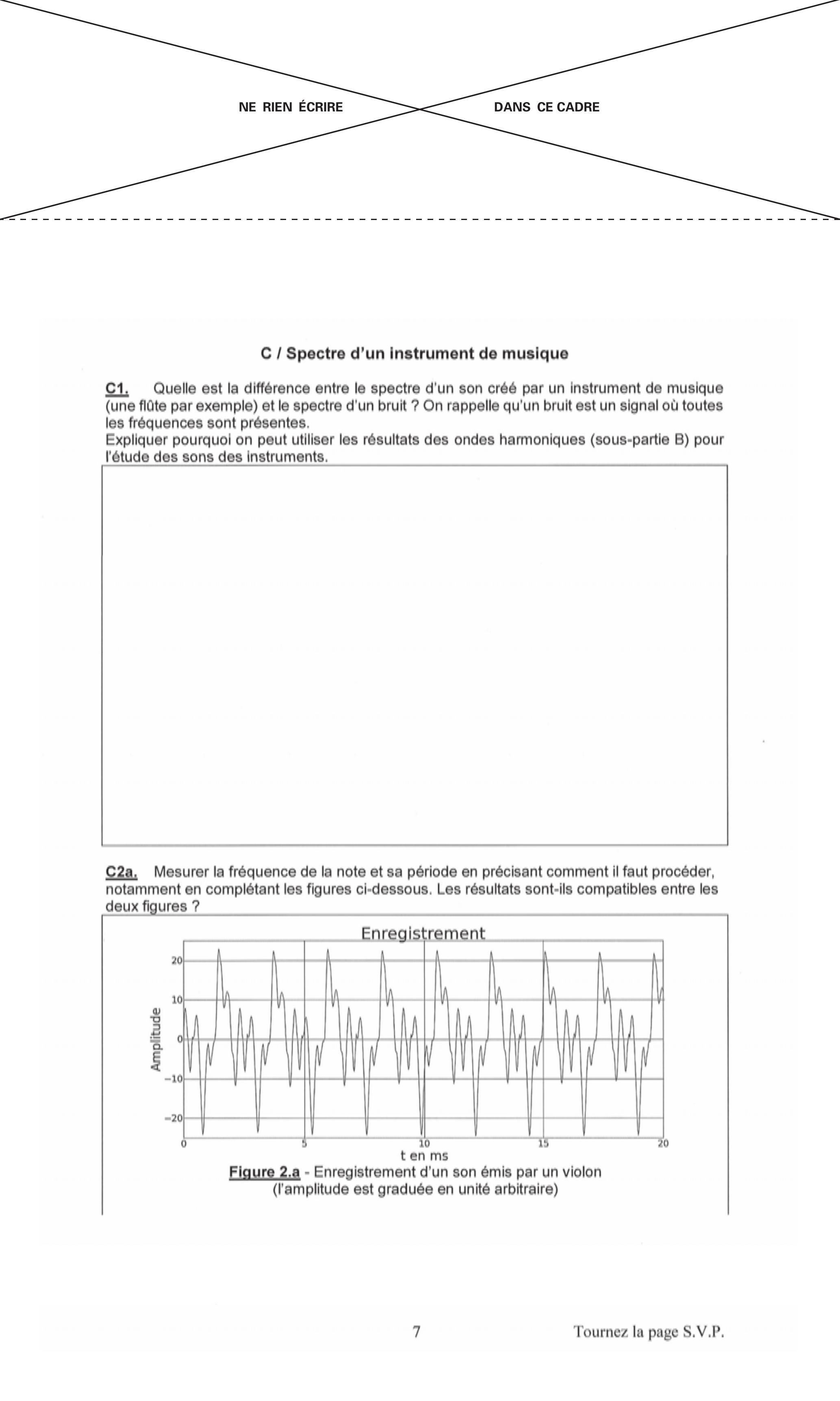 C1. Quelle est la différence entre le spectre d'un son créé par un instrument de musique (une flûte par exemple) et le spectre d'un bruit? On rappelle qu'un bruit est un signal où toutes les fréquences sont présentes.