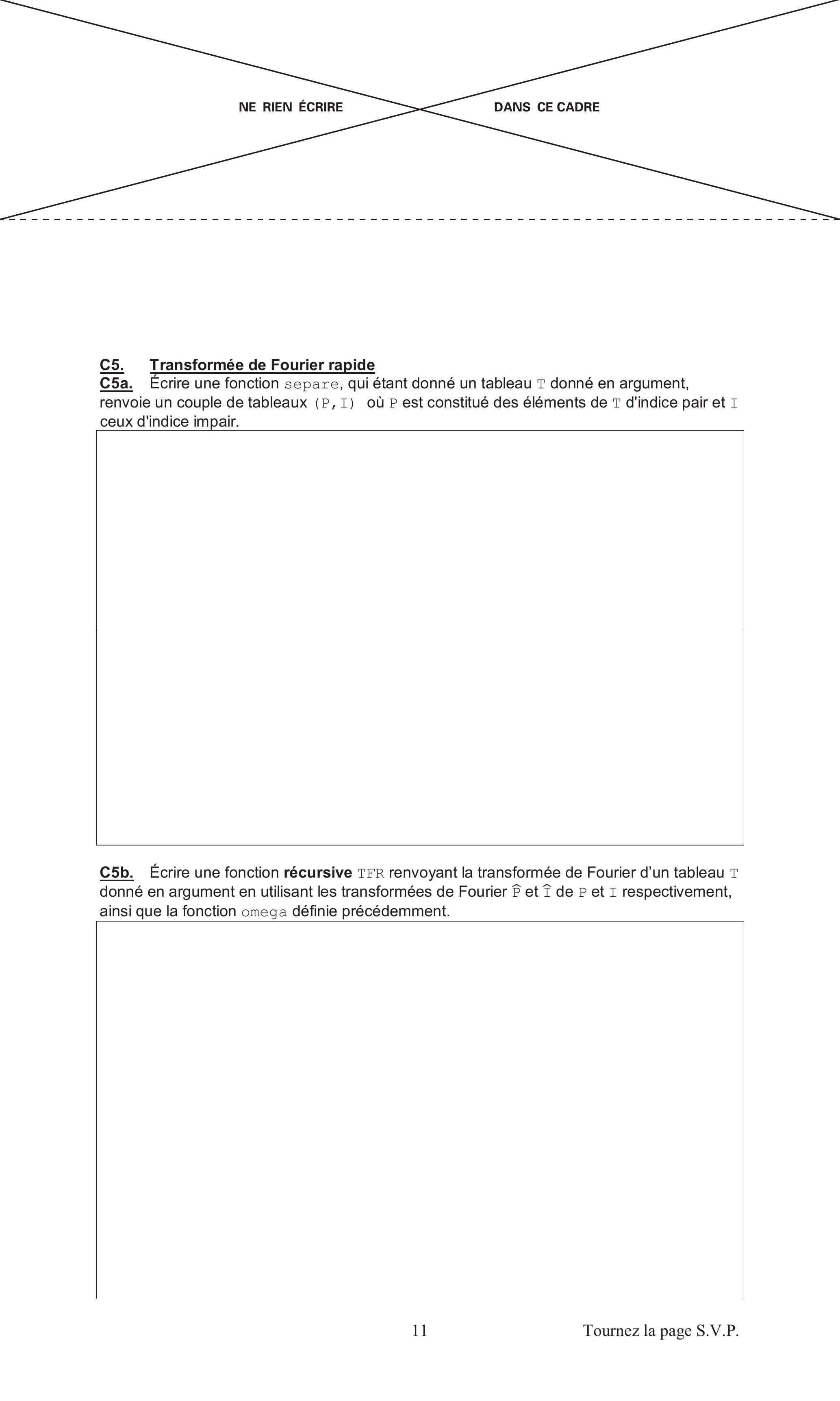 C5b. On suppose que est une puissance de 2 de la forme . Les tableaux P et I renvoyés par la fonction separe ont donc eux aussi un nombre pair d'éléments et on peut faire sur eux la même opération.