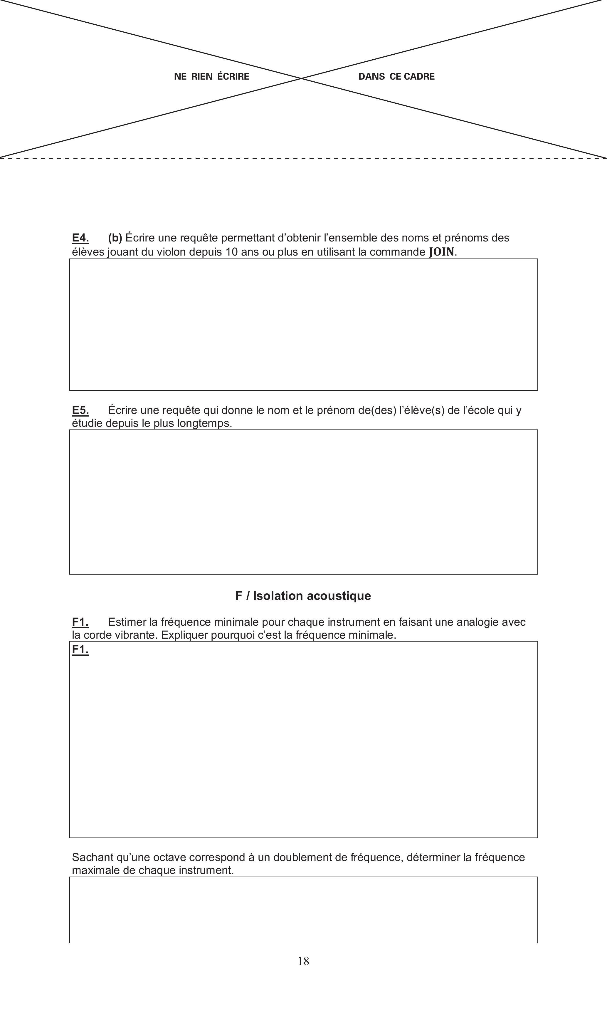 Le candidat devra porter l'ensemble de ses réponses sur le cahier réponses, à l'exclusion de toute autre copie. Les résultats doivent être reportés dans les cadres prévus à cet effet.