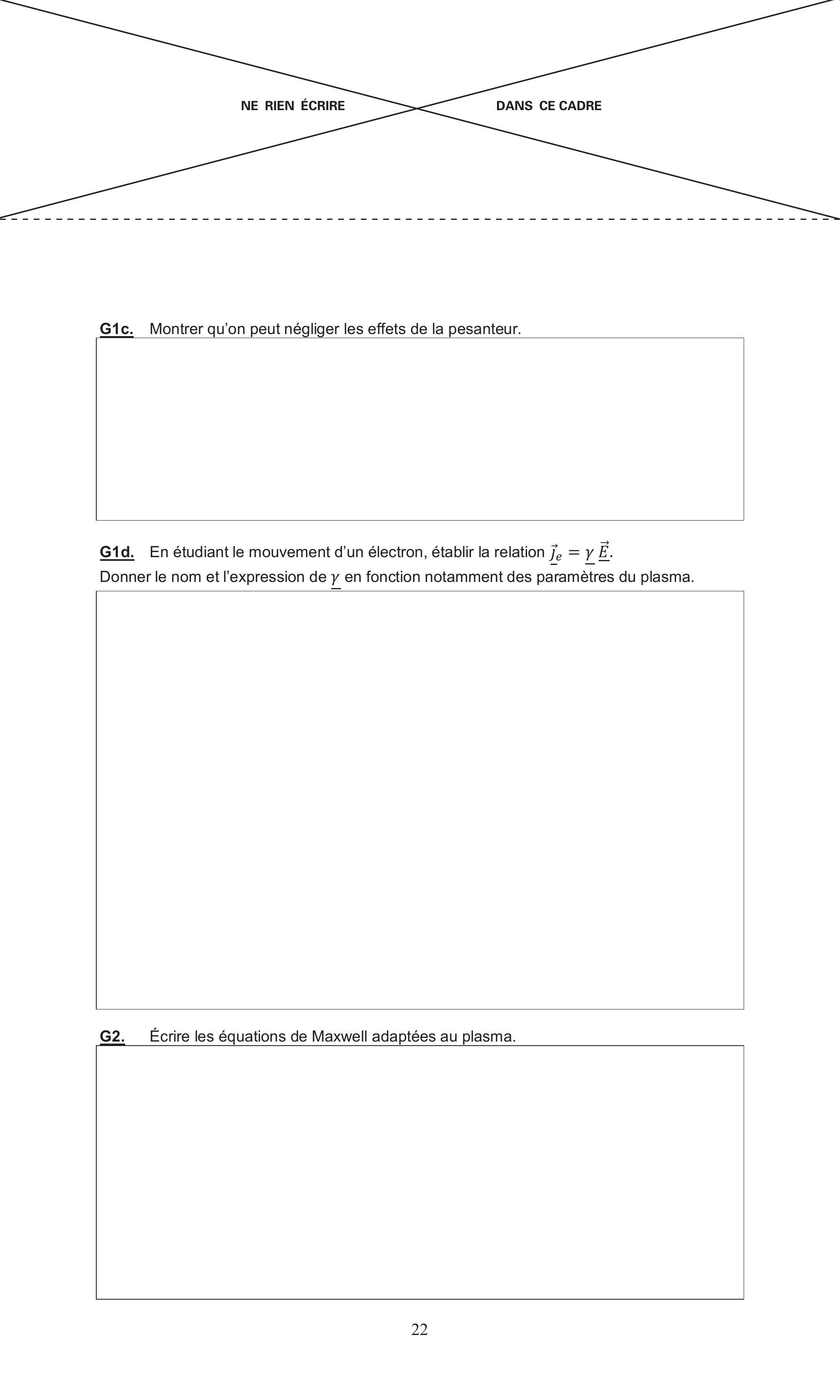 G2. Écrire les équations de Maxwell adaptées au plasma.