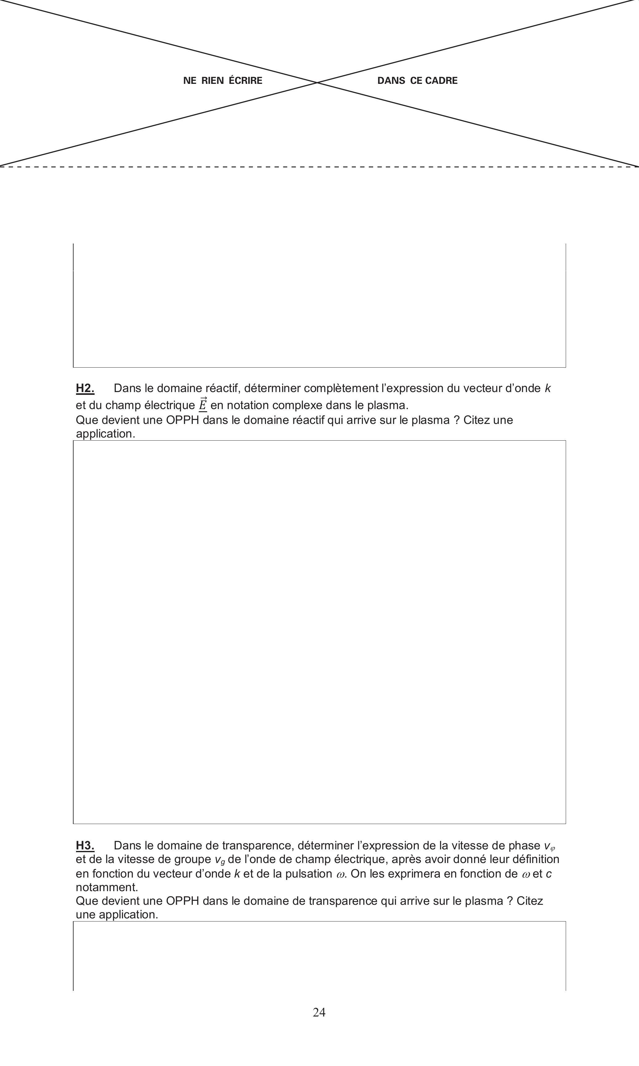 H2. Dans le domaine réactif, déterminer complètement l'expression du vecteur d'onde et du champ électrique en notation complexe dans le plasma.