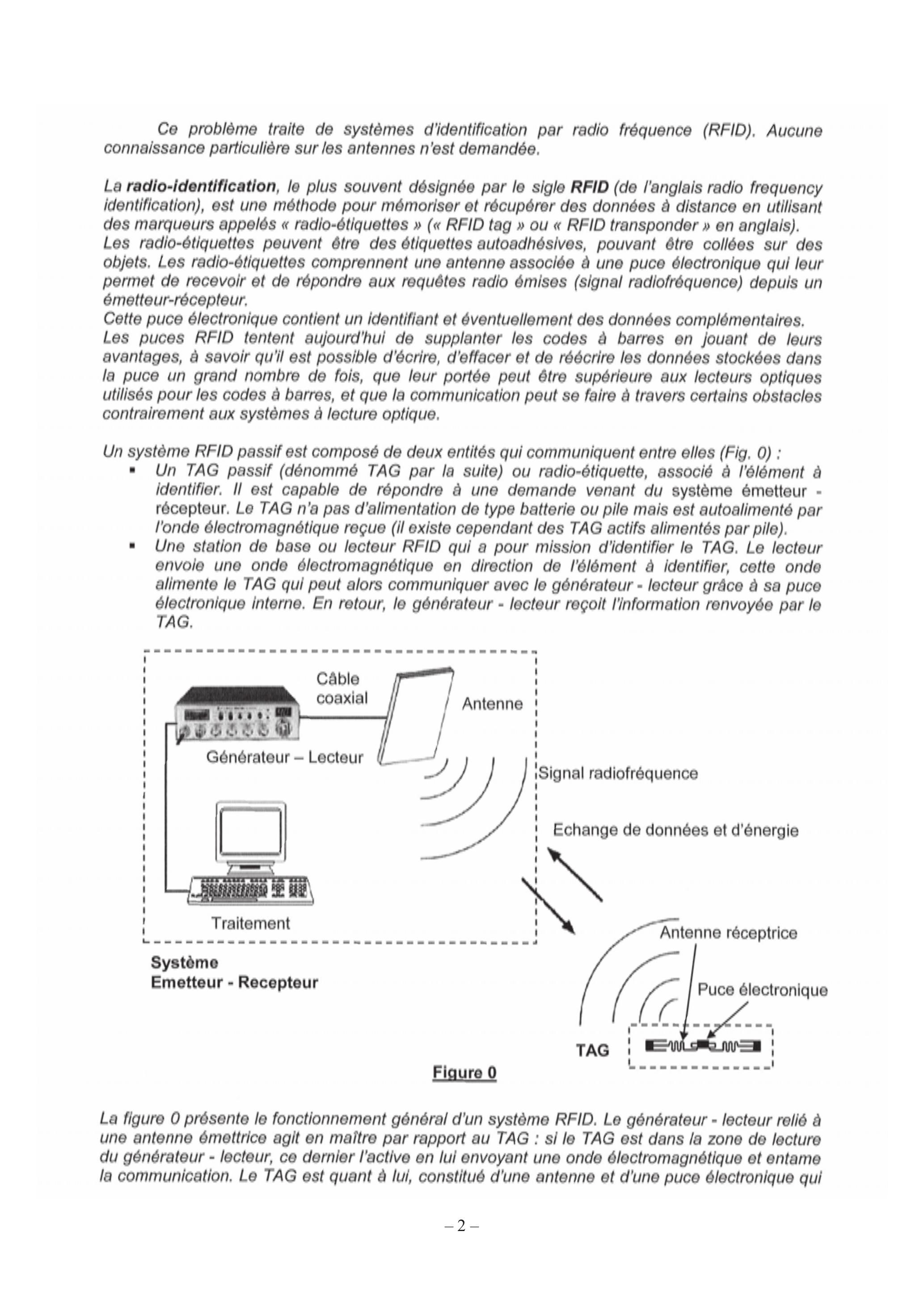 Ce problème traite de systèmes d'identification par radio fréquence (RFID). Aucune connalssance particulière sur les antennes n'est demandée.