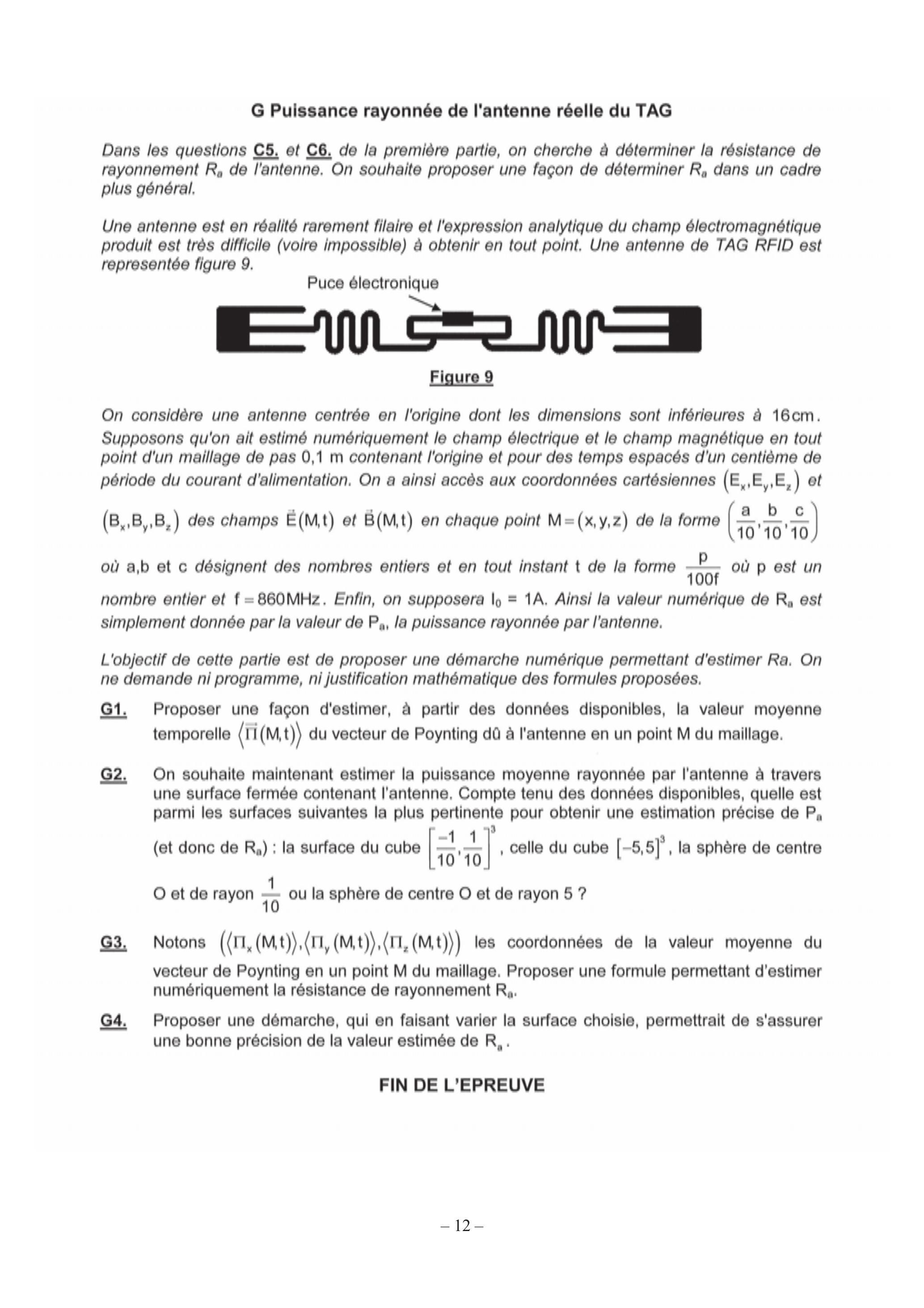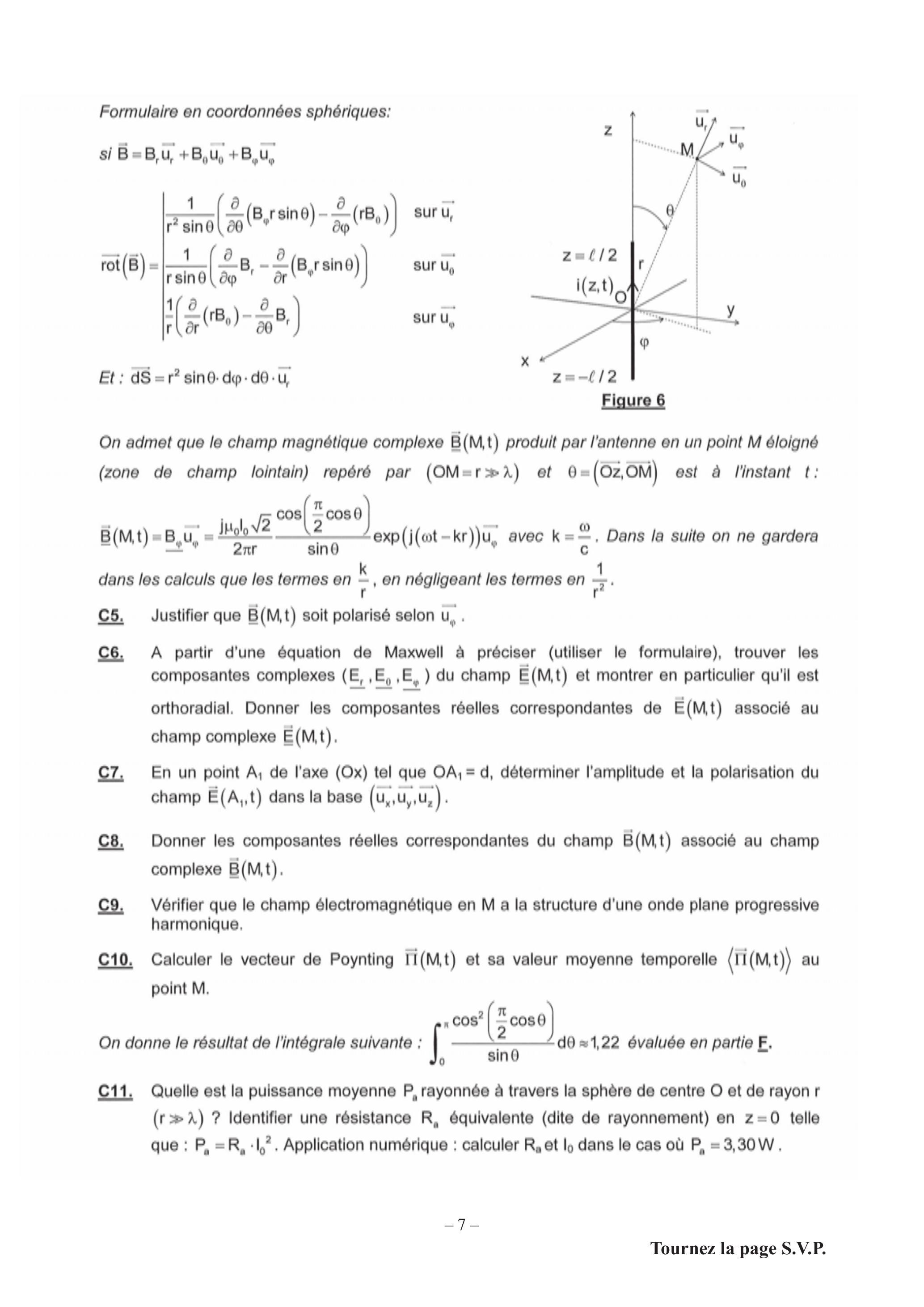 au champ électromagnétique incident produit par s'écrit (où est le courant dans (cf. C.11.)). Pour les applications numériques prendre et . On fera l'hypothèse que l'antenne ne perturbe pas l'émission de .