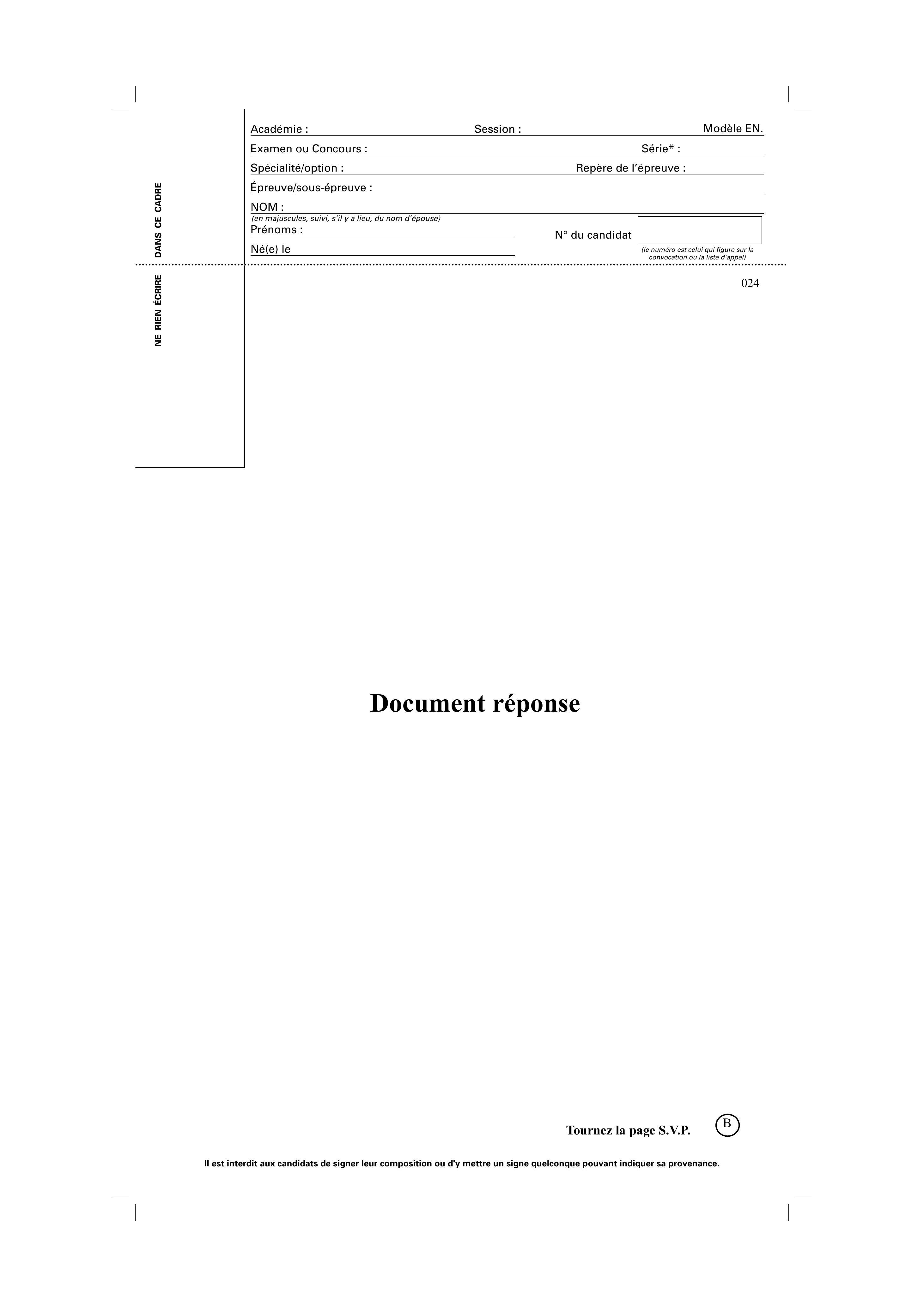 Un document réponse est à rendre non plié avec la copie de la deuxième partie.