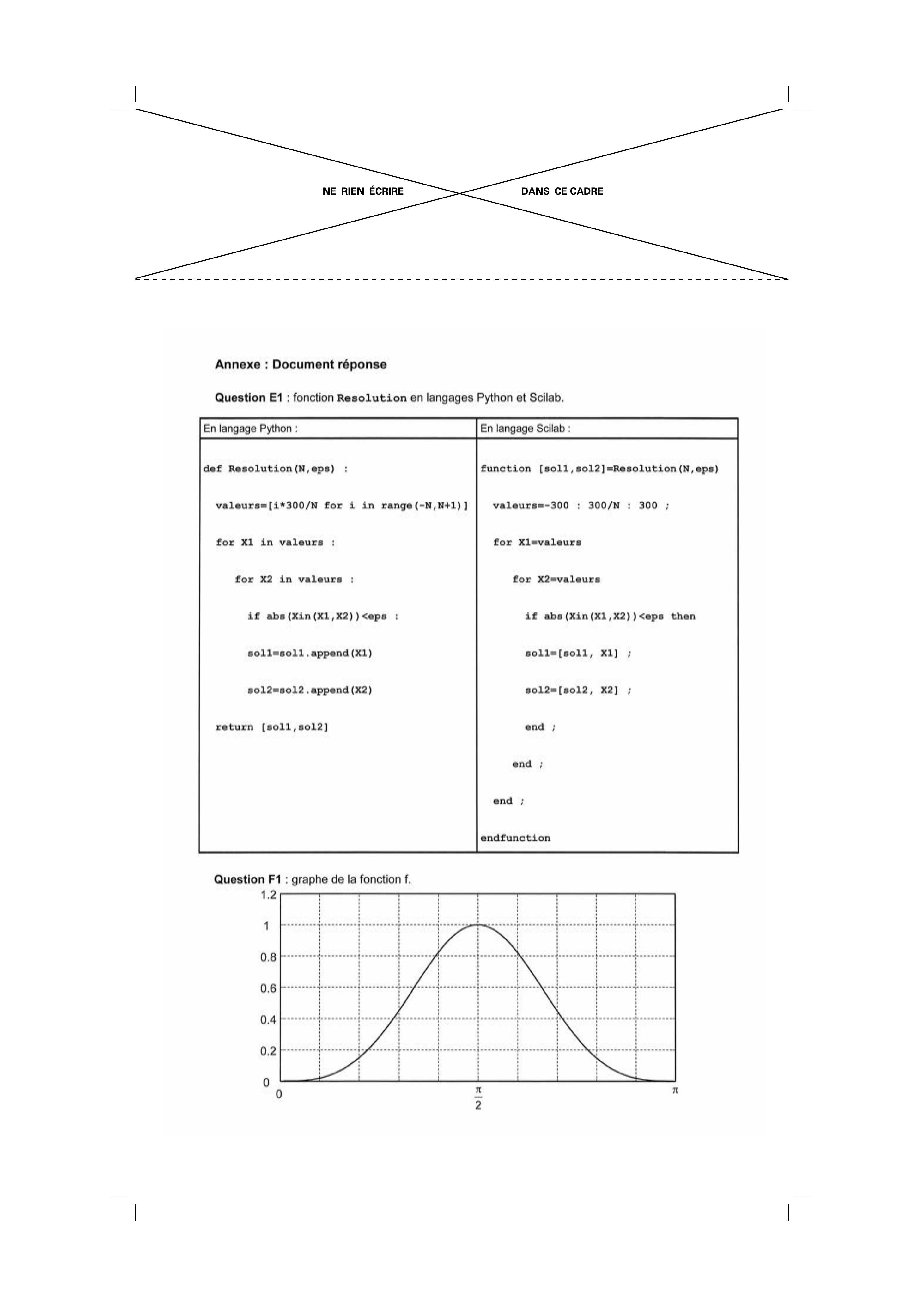 II n'est pas demandé de vérifier dans les algorithmes que les variables d'entrée sont bien du type voulu. Il est ainsi par exemple inutile dans la question F2. de tester si la variable d'entrée x est bien dans l'intervalle .
