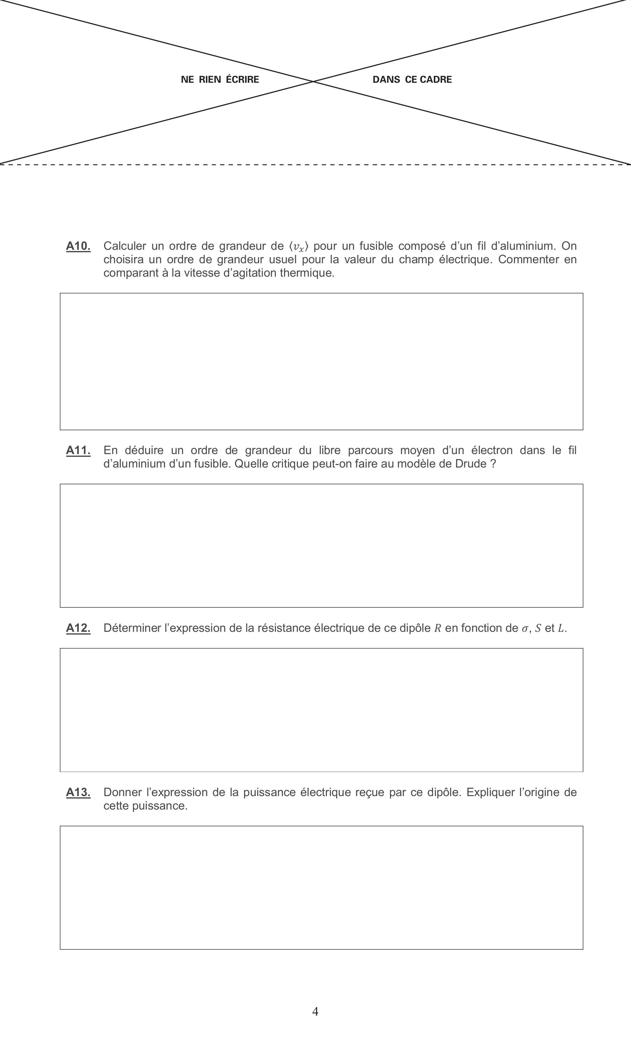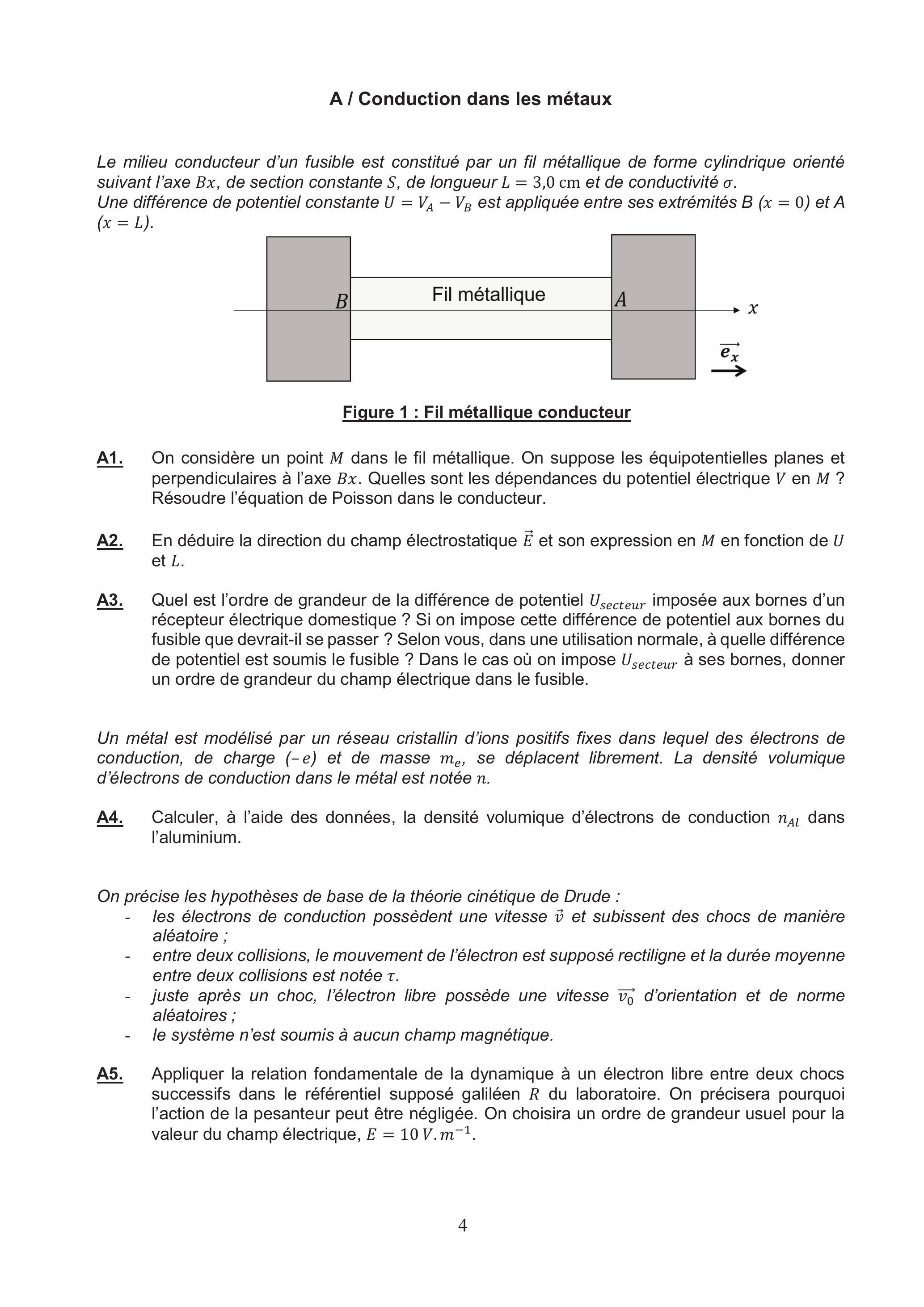 A11. En déduire un ordre de grandeur du libre parcours moyen d'un électron dans le fil d'aluminium d'un fusible. Quelle critique peut-on faire au modèle de Drude?