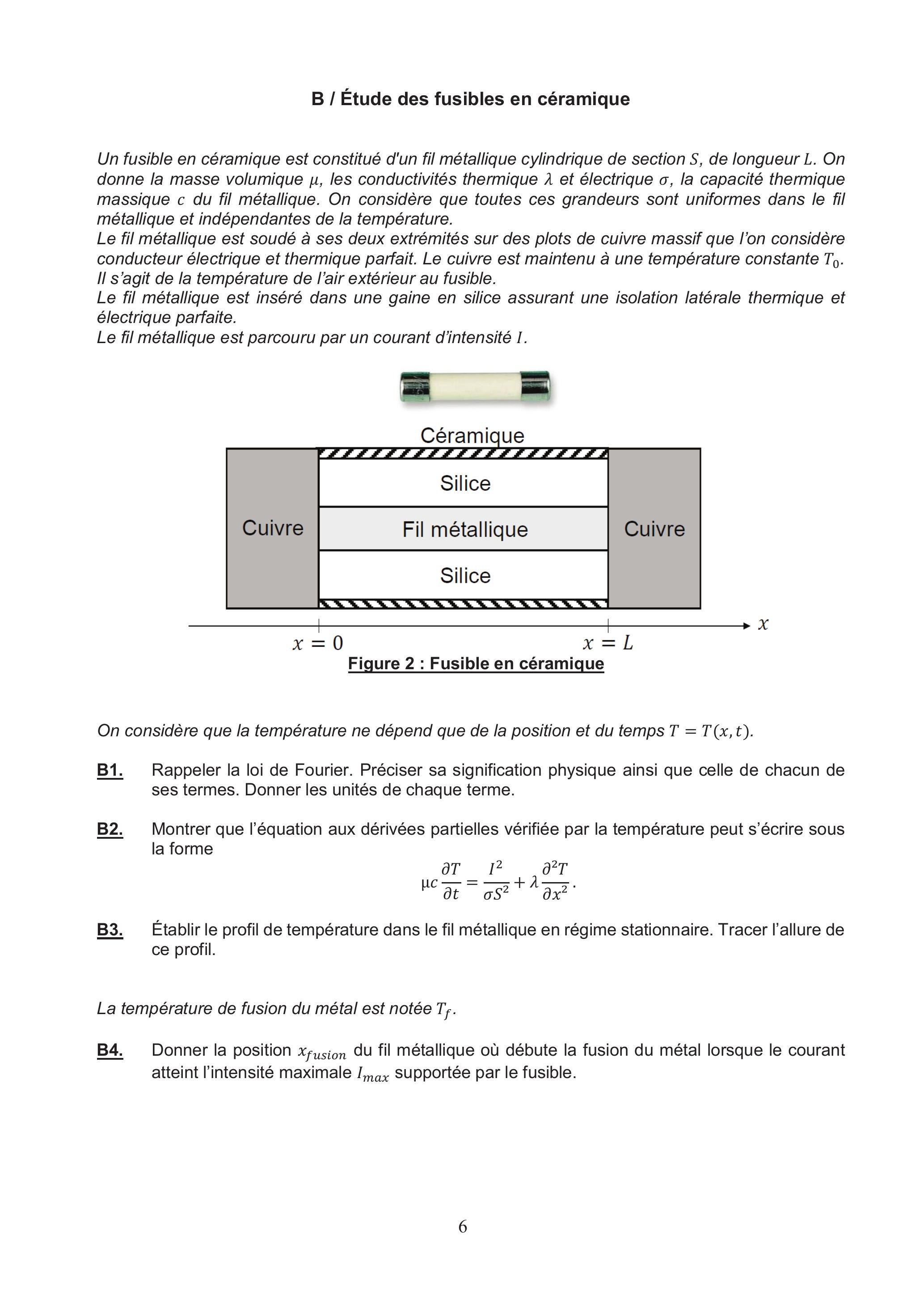 Un fusible en céramique est constitué d'un fil métallique cylindrique de section , de longueur . On donne la masse volumique , les conductivités thermique et électrique , la capacité thermique massique c du fil métallique. On considère que toutes ces grandeurs sont uniformes dans le fil métallique et indépendantes de la température.
