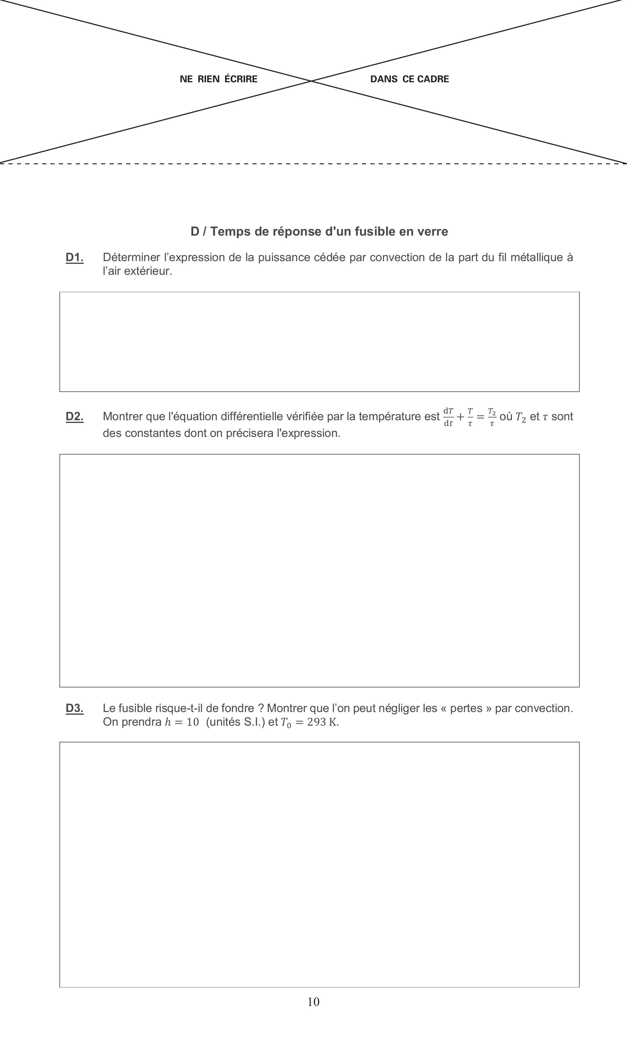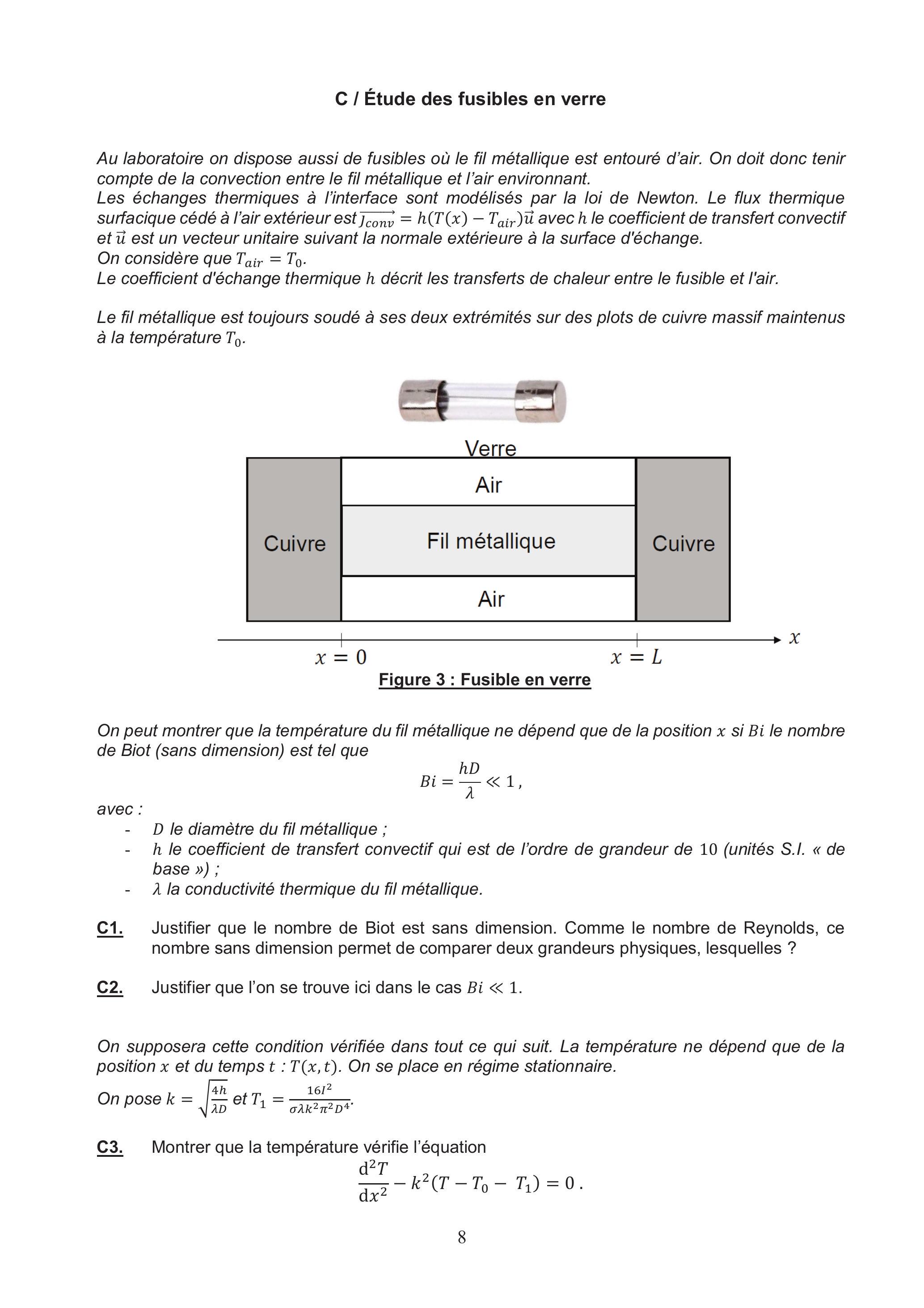 Le fil métallique est soudé à ses deux extrémités sur des plots de cuivre massif que l'on considère conducteur électrique et thermique parfait. Le cuivre est maintenu à une température constante . Il s'agit de la température de l'air extérieur au fusible.