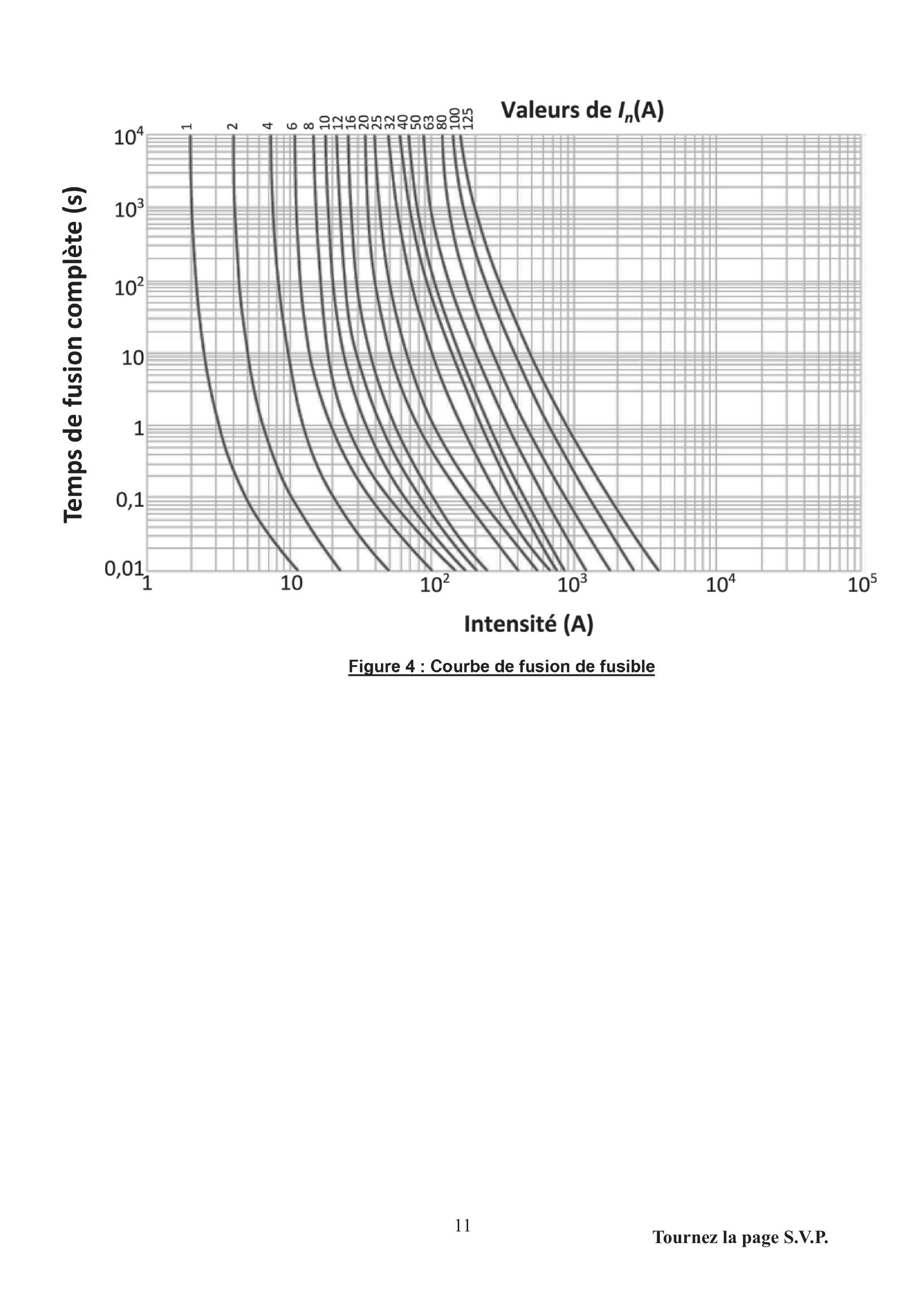 E15. Commenter la courbe obtenue. Préciser la nature des asymptotes à faible et forte intensités. Estimer le courant nominal d'un tel fusible.