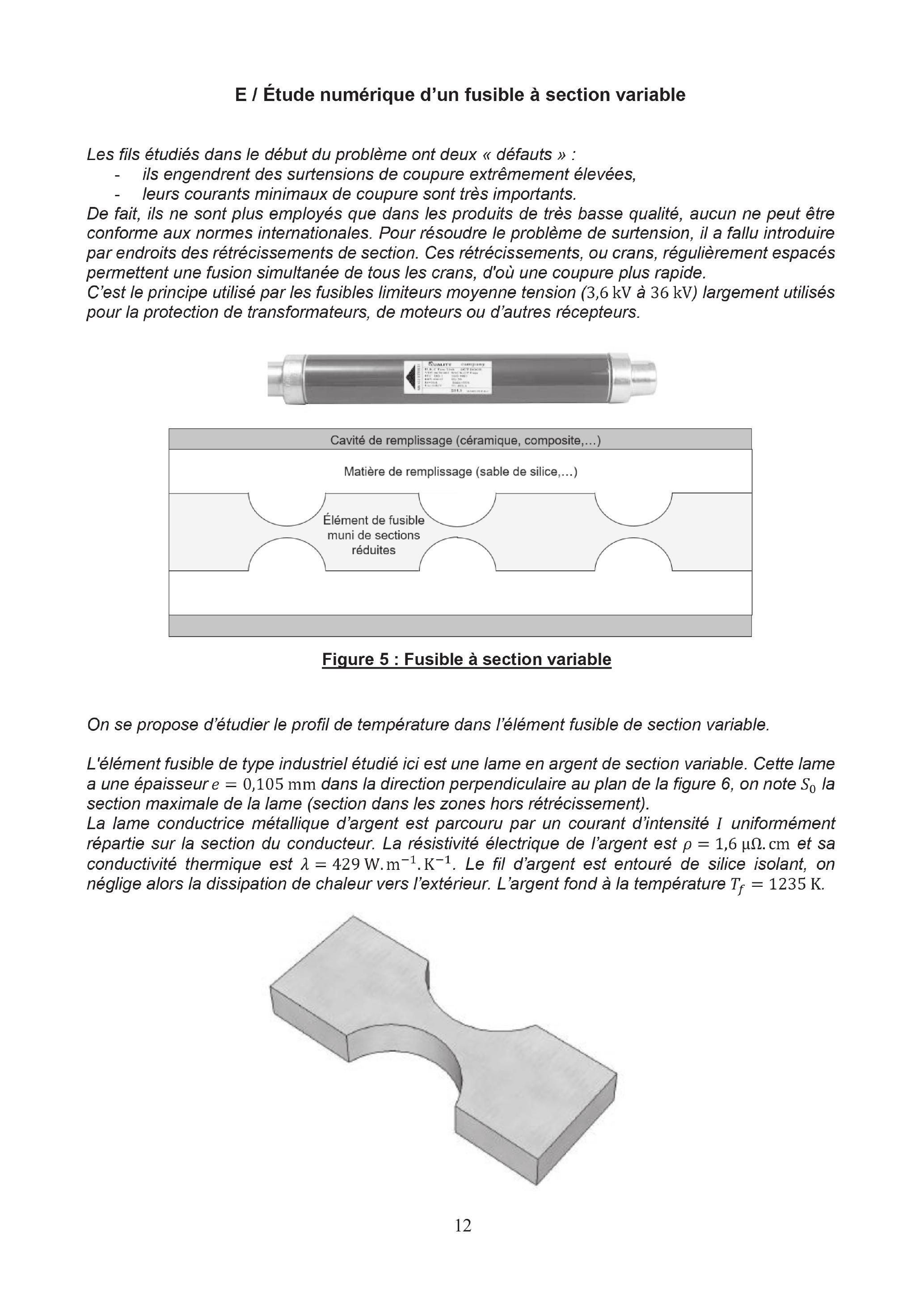 Le milieu conducteur d'un fusible est constitué par un fil métallique de forme cylindrique orienté suivant l'axe , de section constante , de longueur et de conductivité .