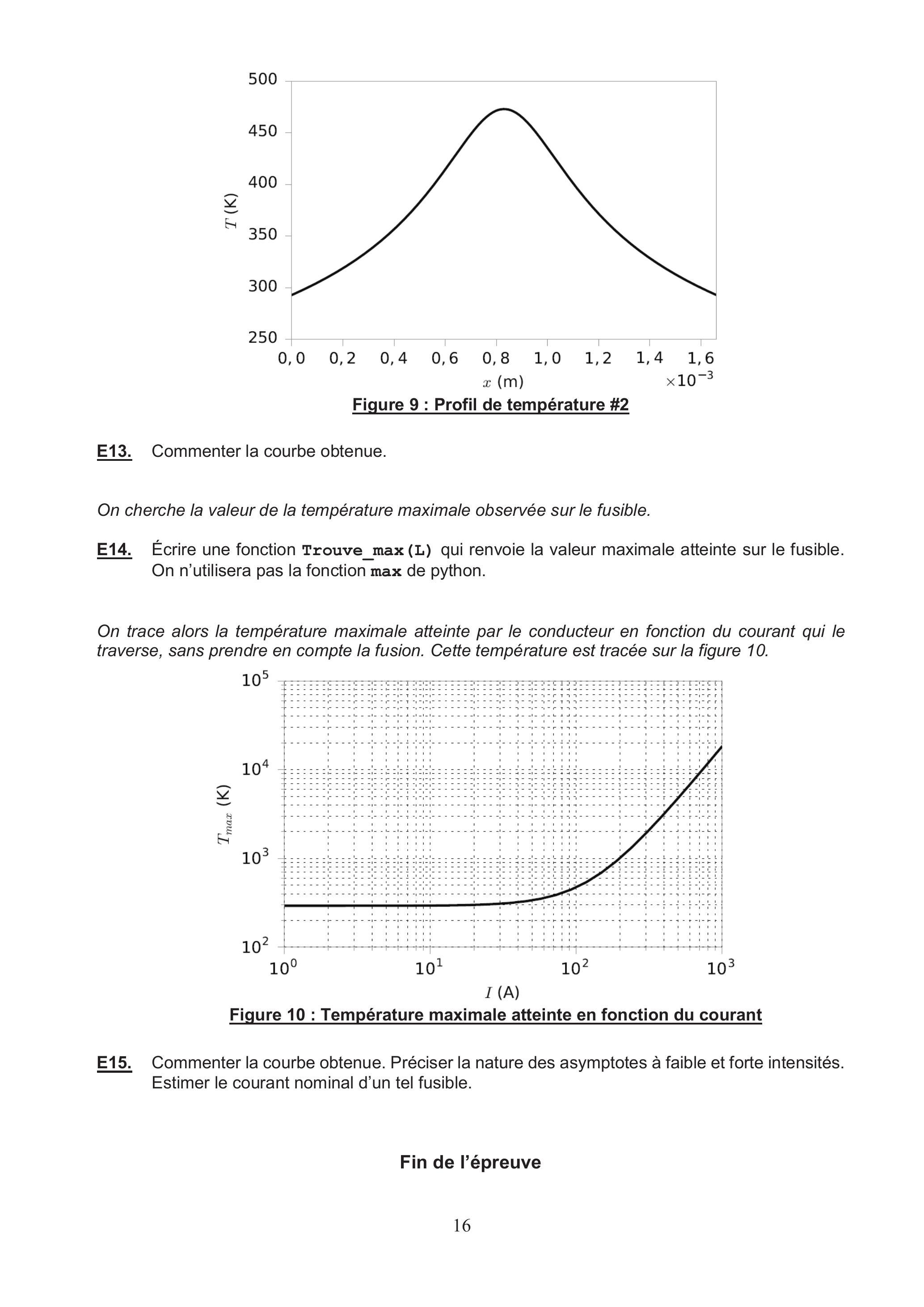 On trace alors la température maximale atteinte par le conducteur en fonction du courant qui le traverse, sans prendre en compte la fusion. Cette température est tracée sur la figure 10.