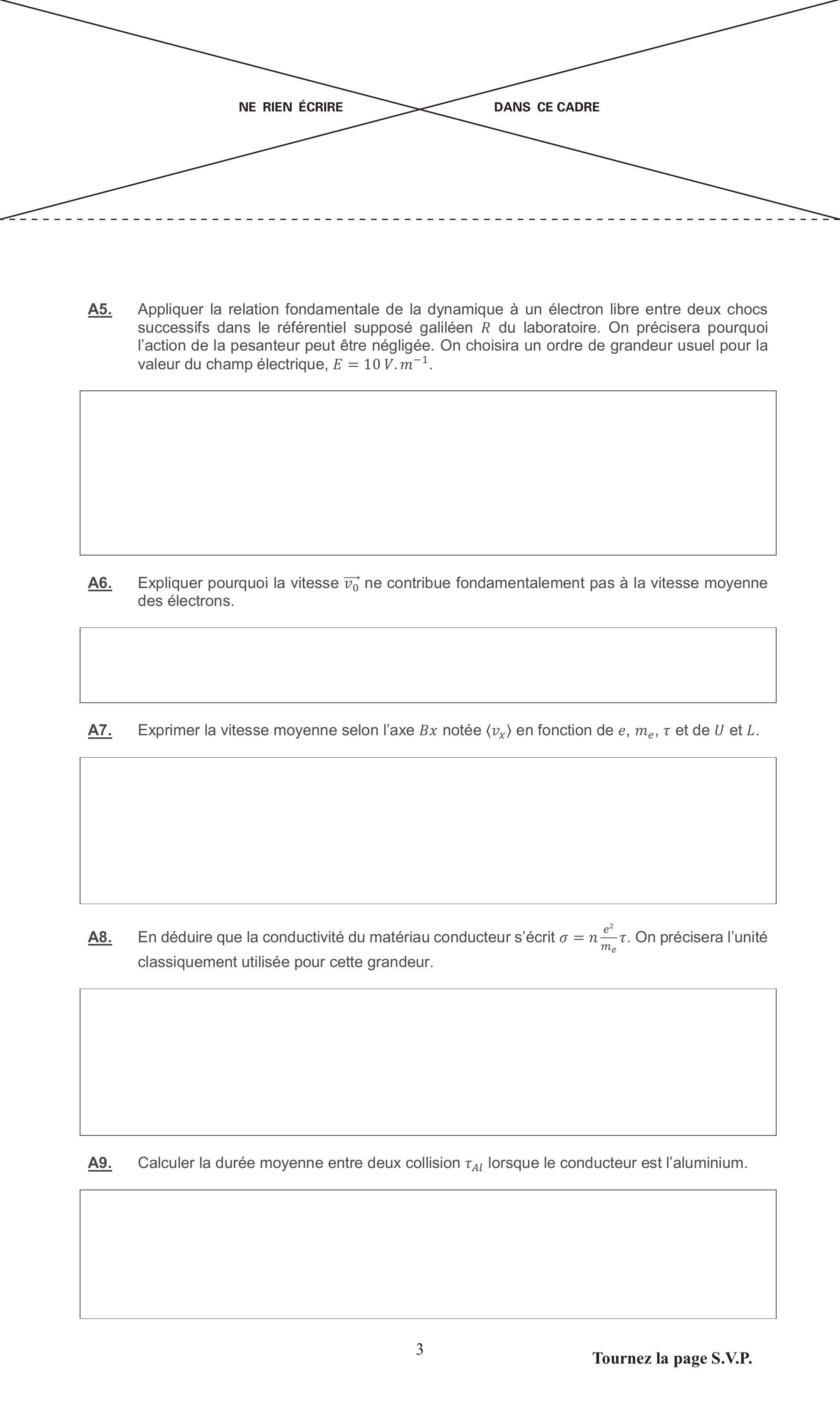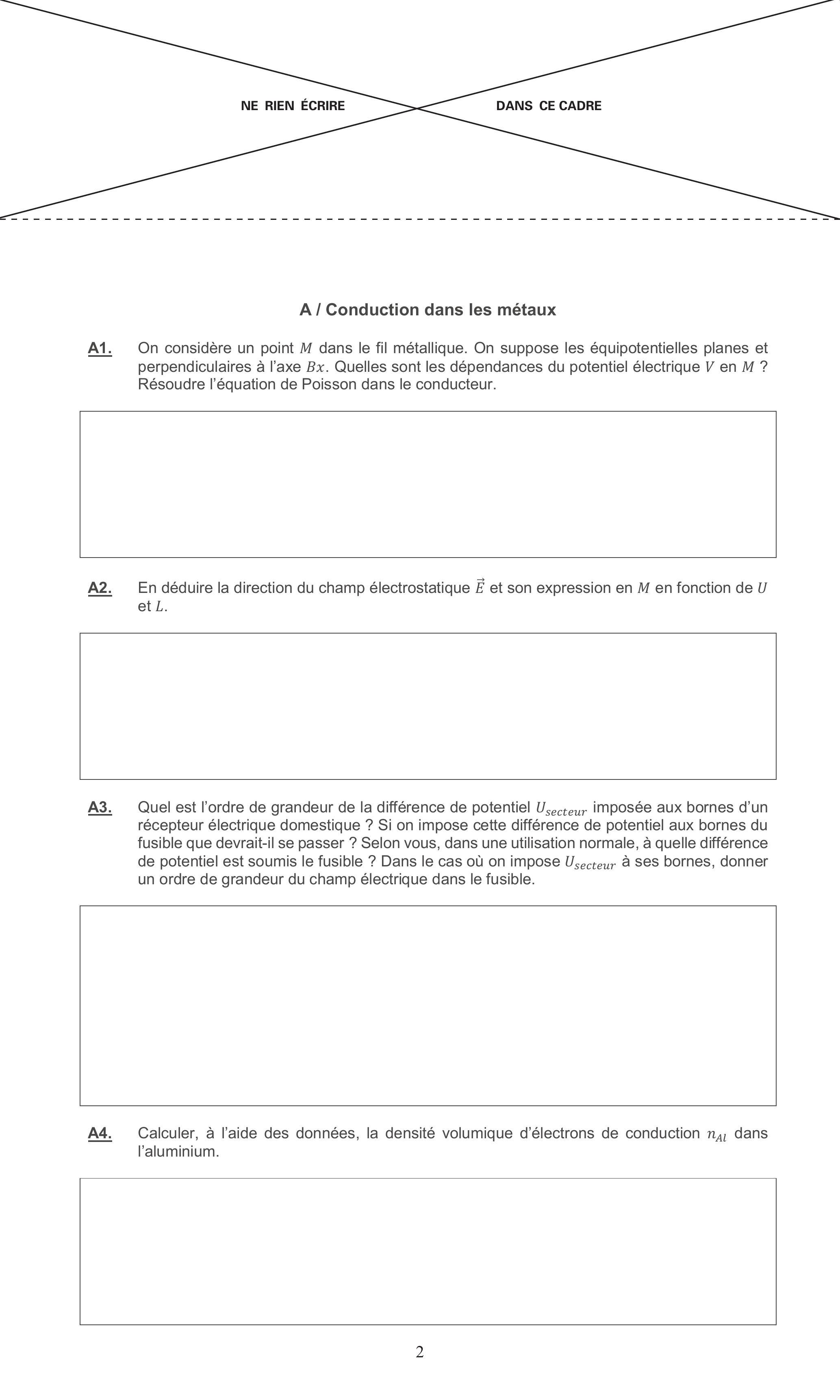 Toutes les réponses seront portées sur ce cahier de réponses à l'exclusion de toute autre copie