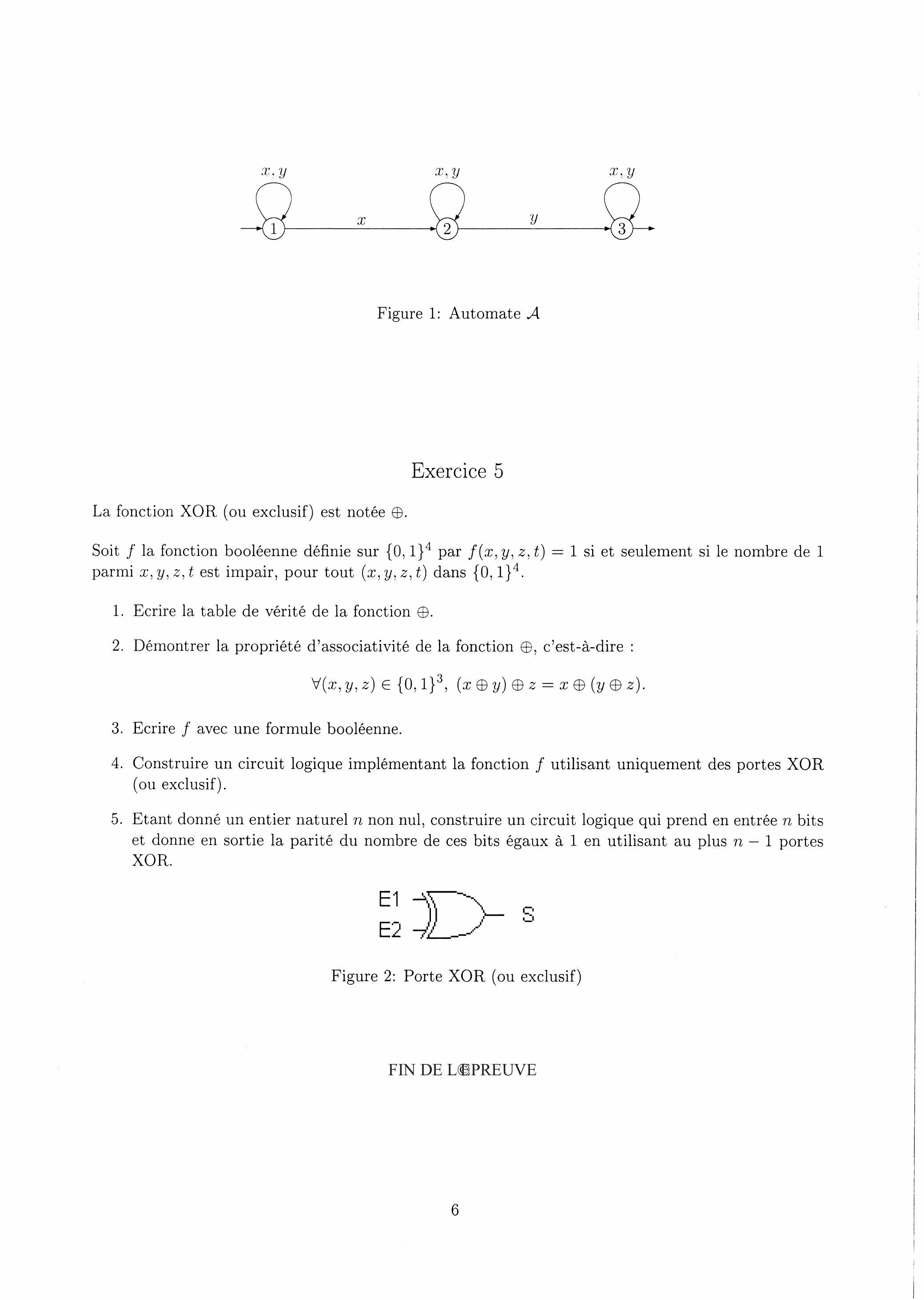 non nul, construire un circuit logique qui prend en entrée bits et donne en sortie la parité du nombre de ces bits égaux à 1 en utilisant au plus portes XOR.