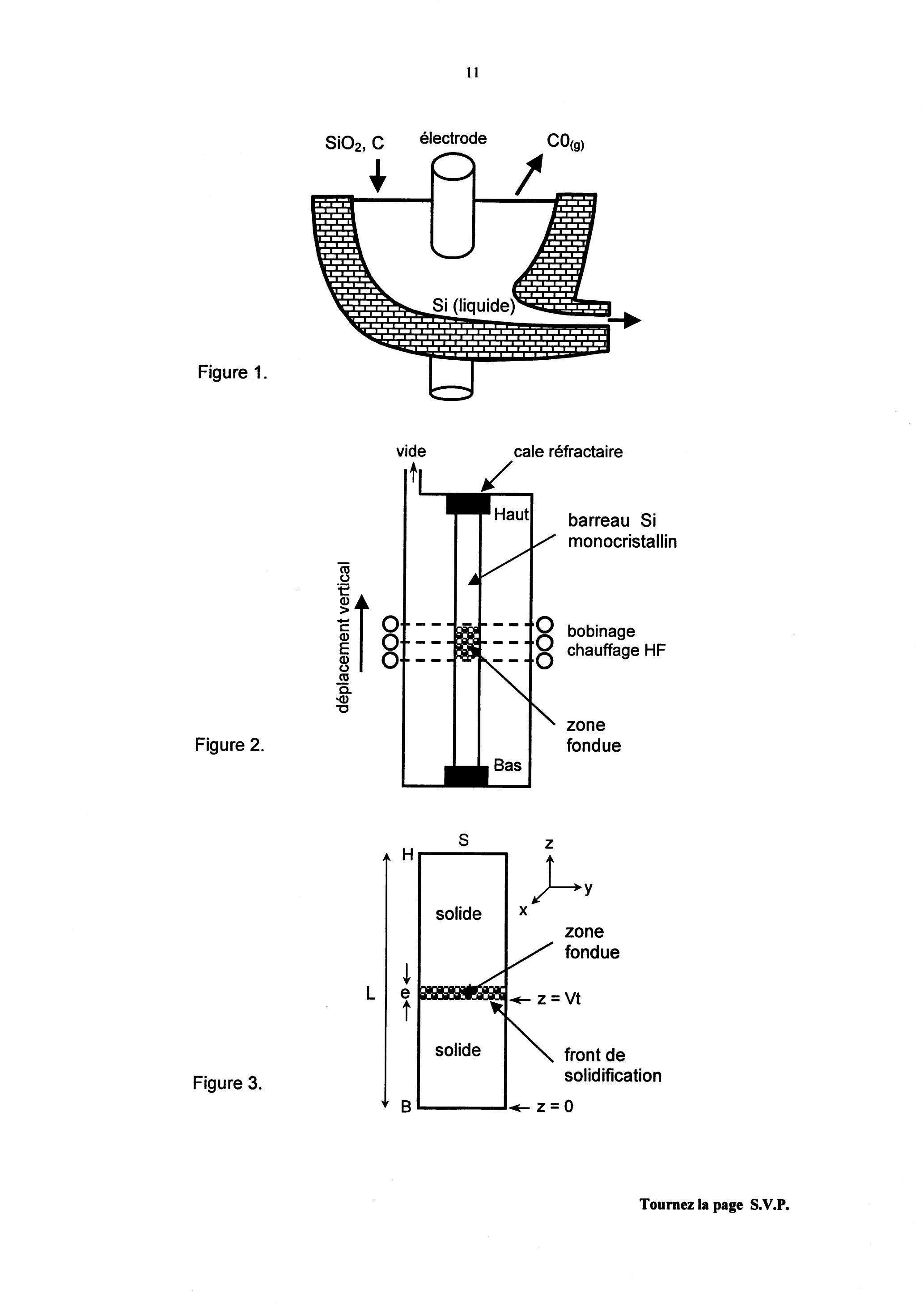 Décrivons cette technique dite de fusion de zone : un barreau de silicium monocristallin à purifier, de longueur et de section droite , est maintenu verticalement dans une enceinte où règne le vide (figures 2 et 3). Le lent déplacement (de bas en haut, à vitesse uniforme) d'une bobine d'induction haute fréquence permet, par création de courants de Foucault, la fusion locale d'une très mince hauteur e de silicium.