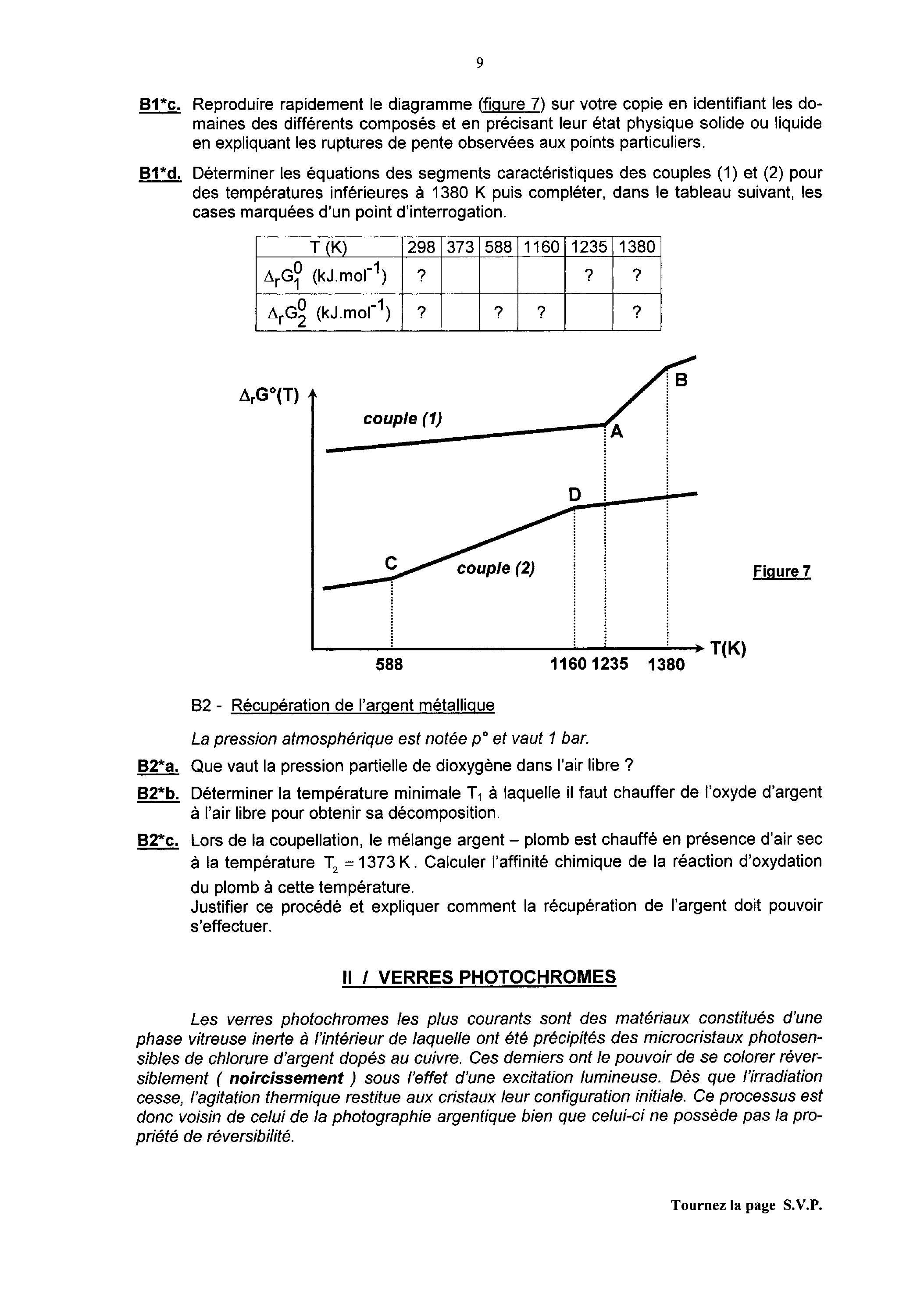 Afin d'étudier la coupellation, les diagrammes d'Ellingham relatifs aux couples cidessous sont représentés sur la figure 7 :
