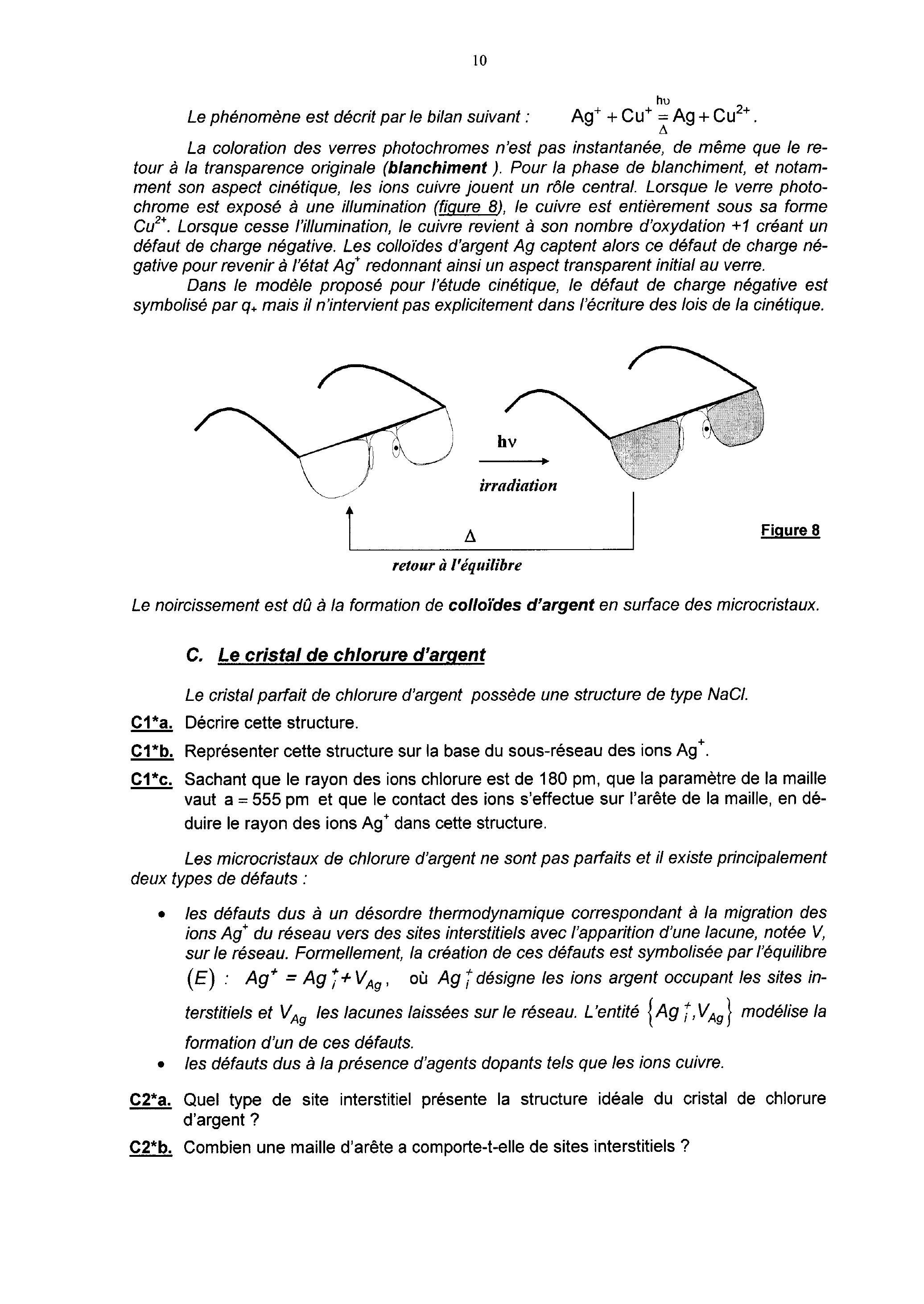 Ce problème comporte deux parties totalement indépendantes. La première partie traite de la physique des colloïdes et aborde quelques notions relatives à leurs caractéristiques physiques en milieu ionisé. La seconde partie est consacrée à une étude de la chimie de l'argent. Ce métal, dispersé sous forme colloïdale dans une matrice de verre, est à l'origine de l'effet photochrome consistant en une coloration du verre lorsque celui-ci est soumis à un rayonnement visible.