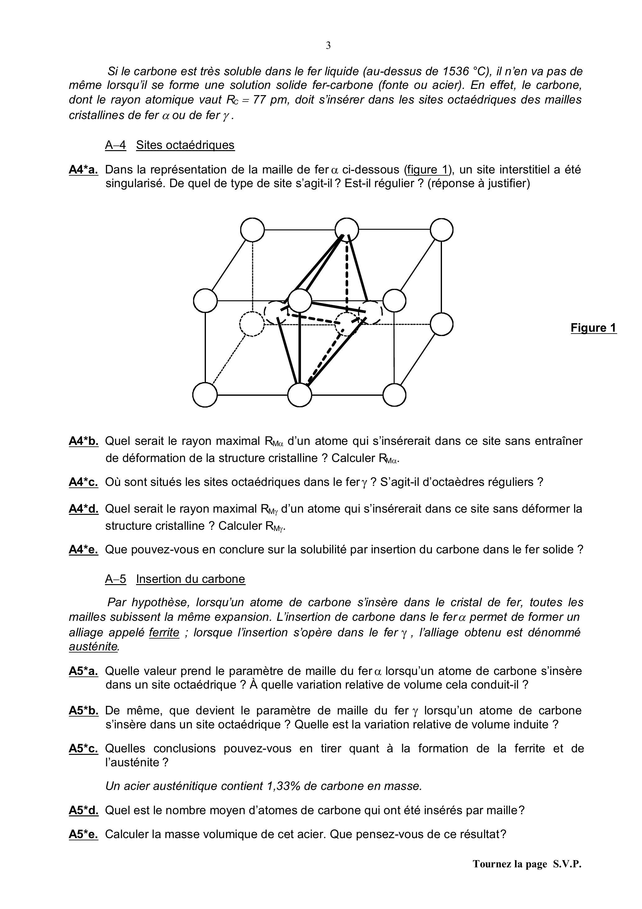 A1*e. Calculer le paramètre de la maille cubique, sachant qu'à la masse volumique du fer est .
