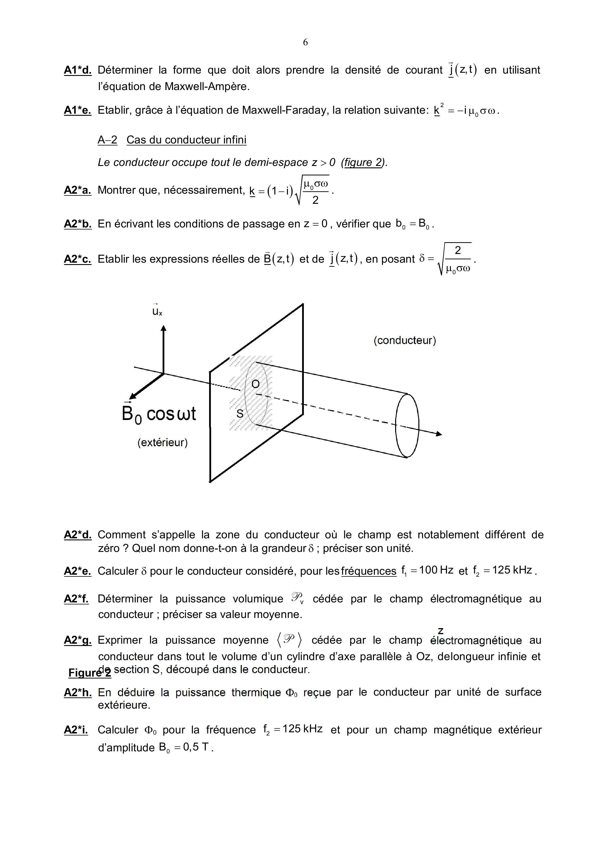 A2*g. Exprimer la puissance moyenne cédée par le champ électromagnétique au conducteur dans tout le volume d'un cylindre d'axe parallèle à Oz , delongueur infinie et Figure section , découpé dans le conducteur. . En déduire la puissance thermique reçue par le conducteur par unité de surface extérieure.