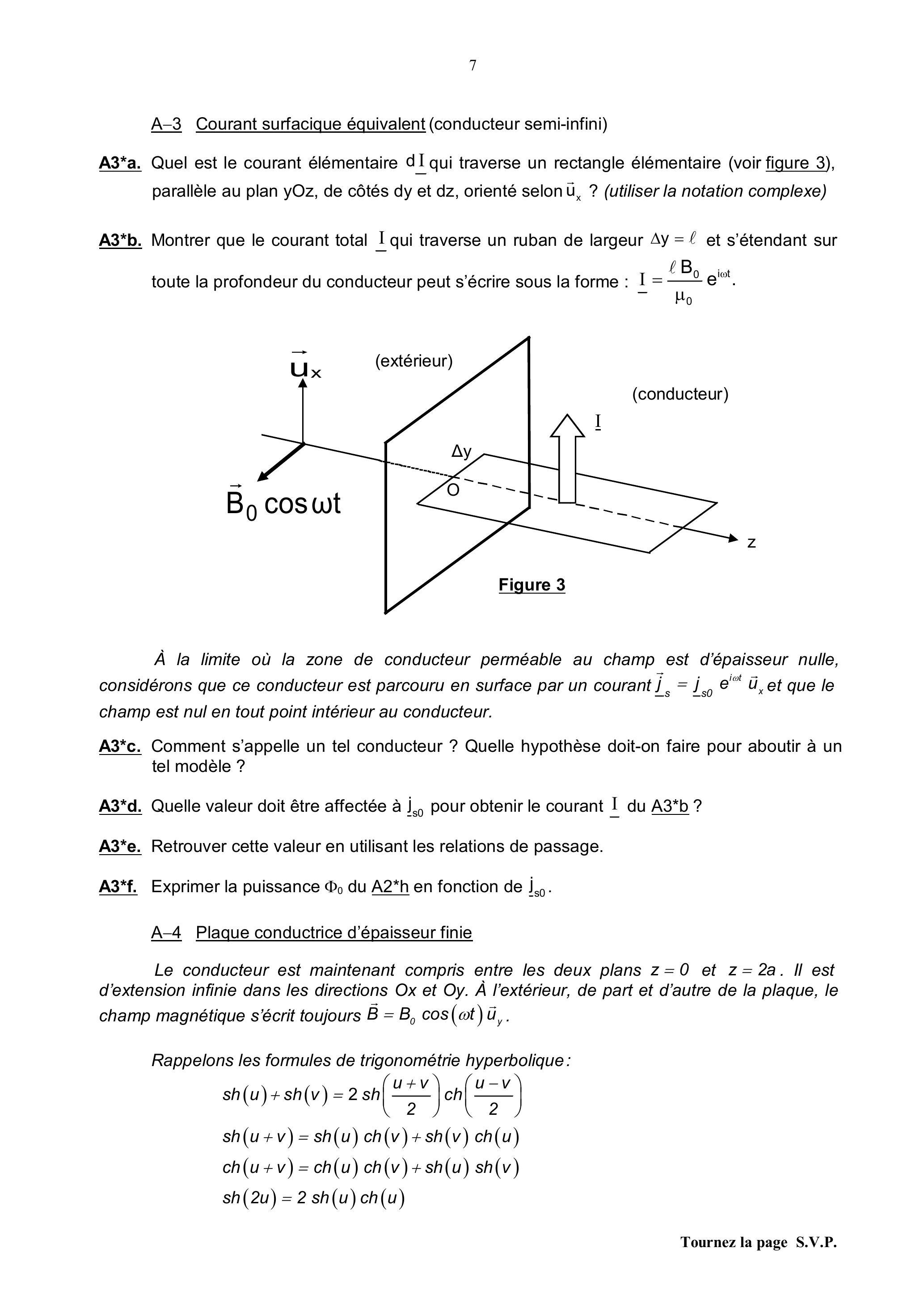 A3*b. Montrer que le courant total I qui traverse un ruban de largeur et s'étendant sur toute la profondeur du conducteur peut s'écrire sous la forme : .
