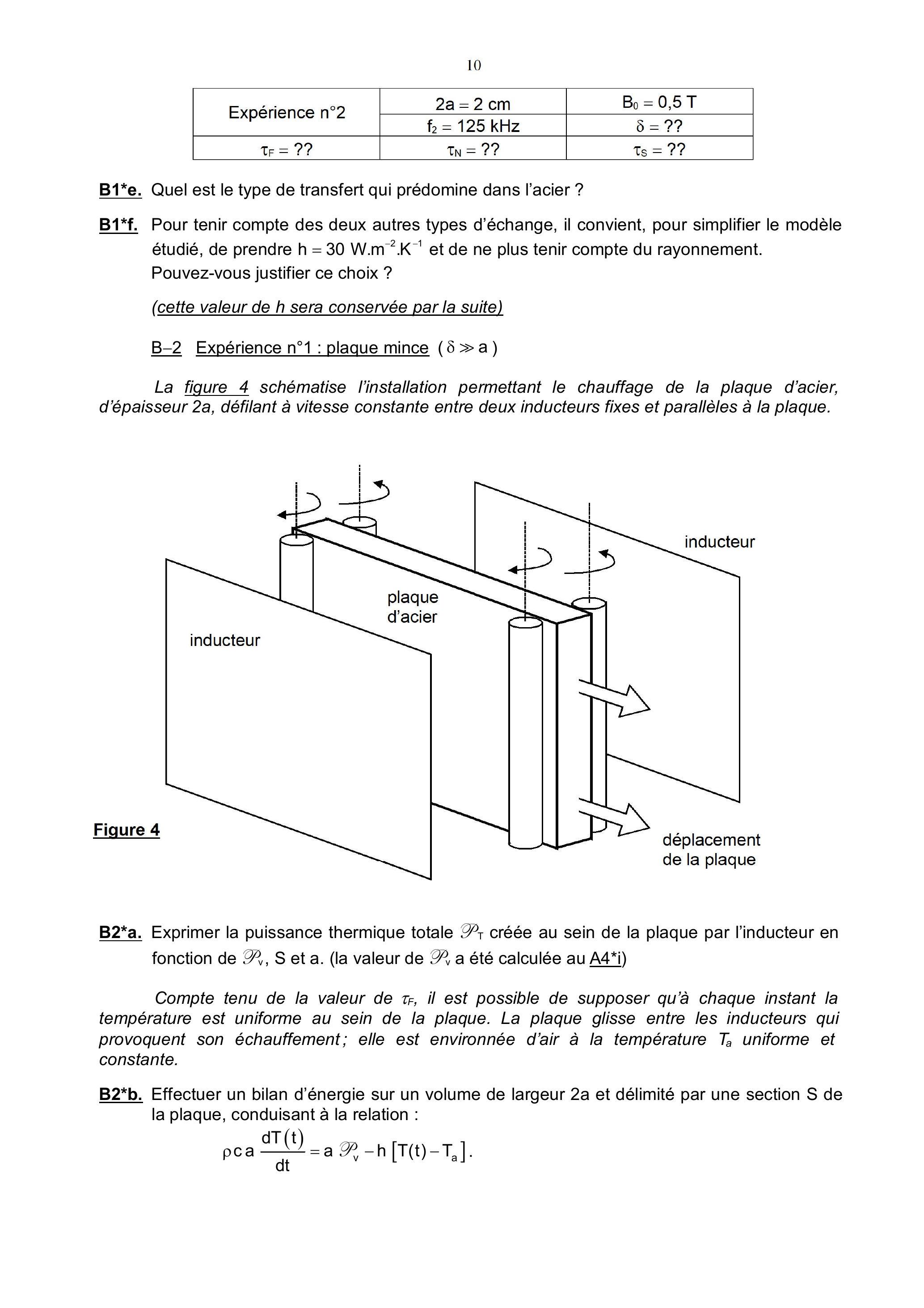 Compte tenu de la valeur de , il est possible de supposer qu'à chaque instant la température est uniforme au sein de la plaque. La plaque glisse entre les inducteurs qui provoquent son échauffement; elle est environnée d'air à la température uniforme et constante.