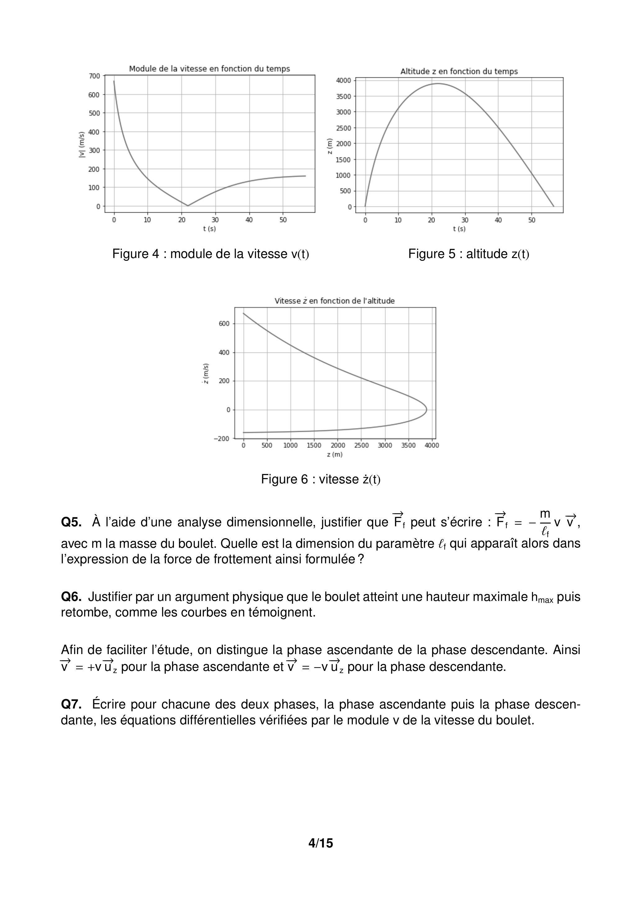 Q15. Discuter les hypothèses du modèle utilisé, en particulier l'uniformité de l'accélération de la pesanteur, ainsi que la forme quadratique de la force de frottement.