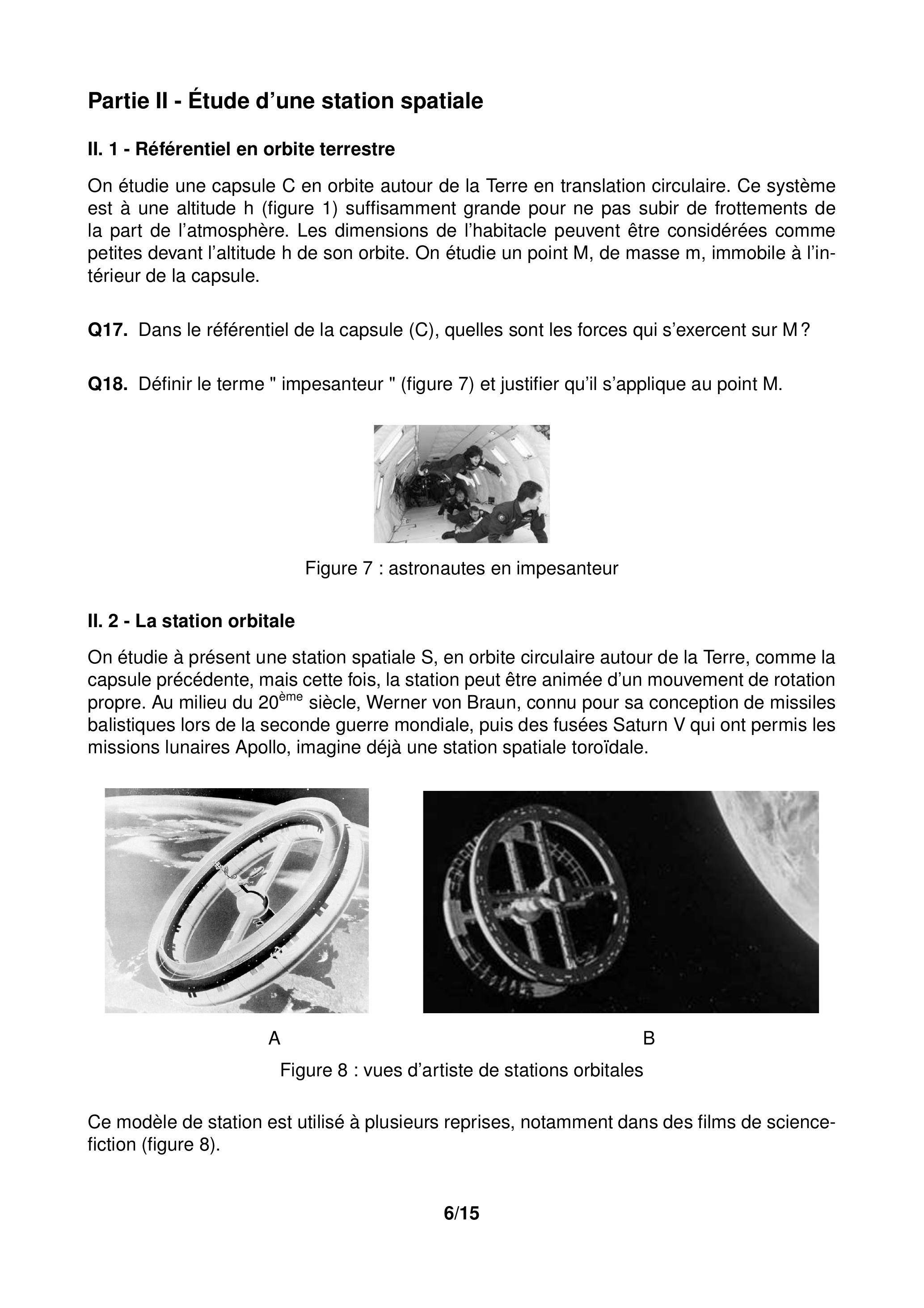 On étudie à présent une station spatiale , en orbite circulaire autour de la Terre, comme la capsule précédente, mais cette fois, la station peut être animée d'un mouvement de rotation propre. Au milieu du è siècle, Werner von Braun, connu pour sa conception de missiles balistiques lors de la seconde guerre mondiale, puis des fusées Saturn V qui ont permis les missions lunaires Apollo, imagine déjà une station spatiale toroïdale.